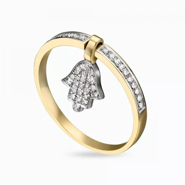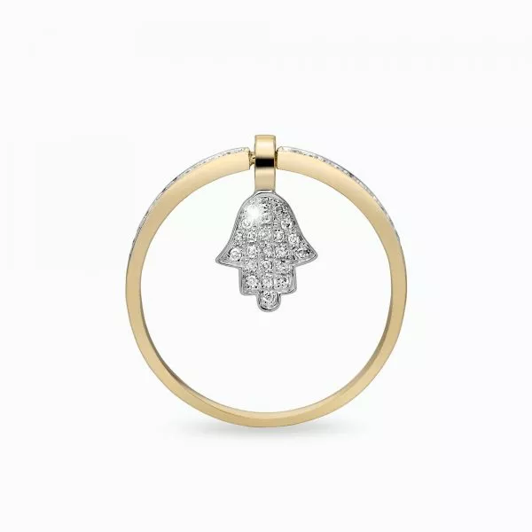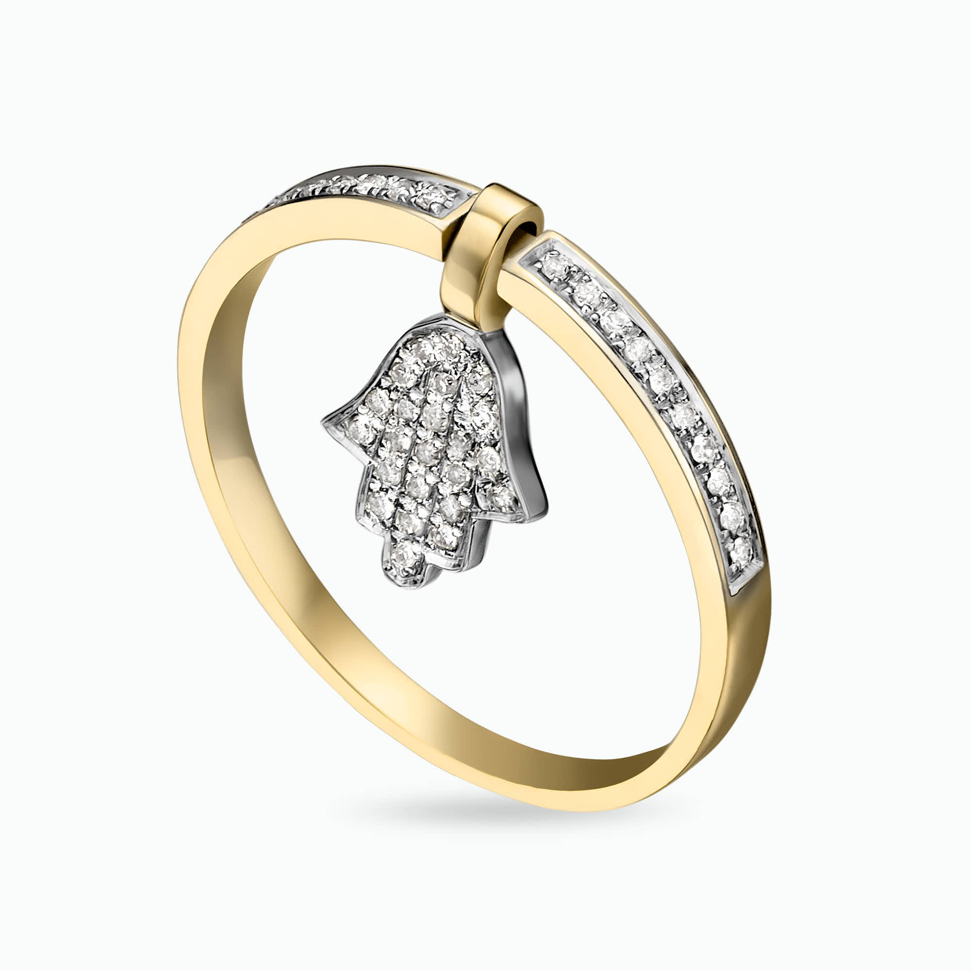 0.16Ct. Diamonds in a 14K Yellow Gold “Hamsa” Ring.