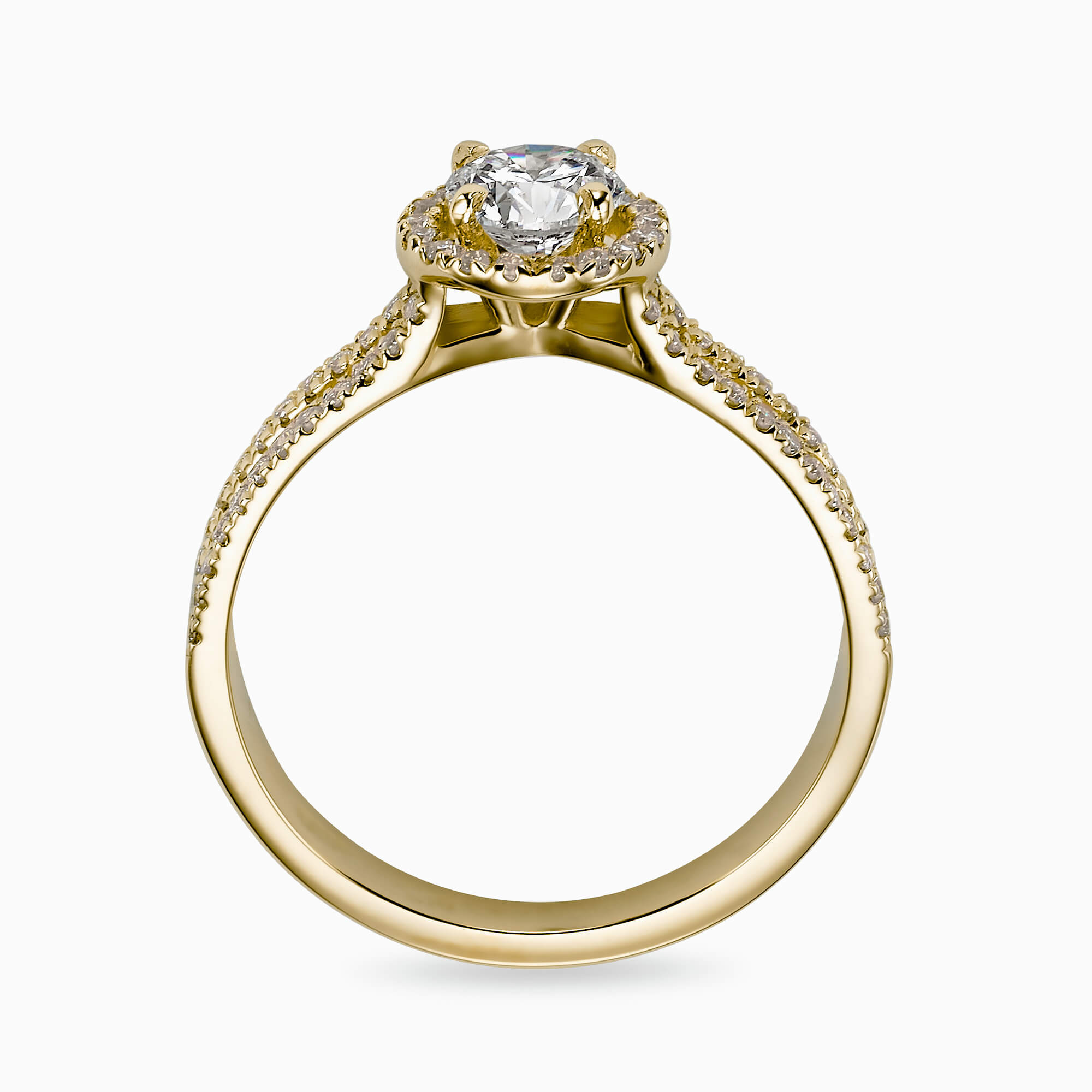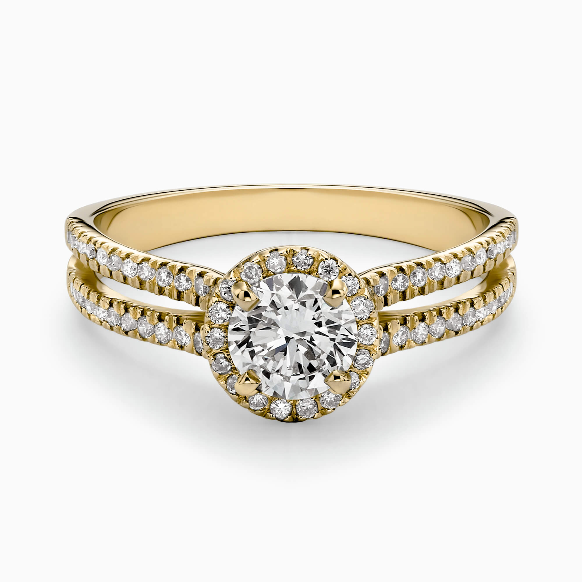 Center round cut diamond starting from 0.50 Ct. with 0.27Ct. Diamond Halo setting mounted in a 14K Ring.