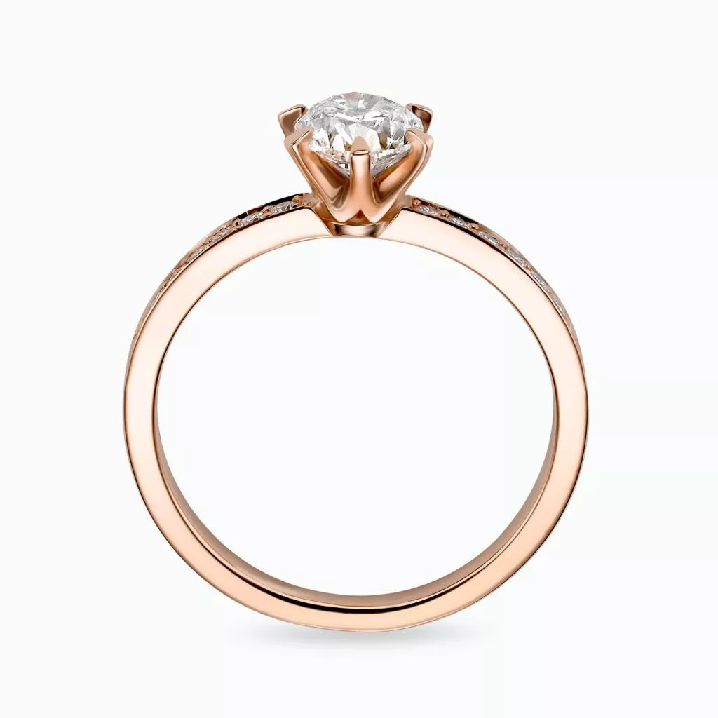 A ring, 14K gold, with a center round cut diamond starting from 0.50 Ct. with Diamonds setting