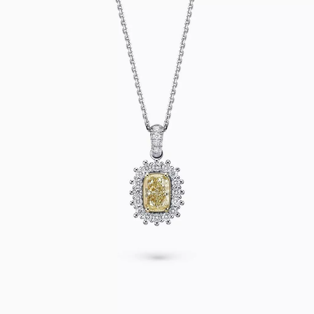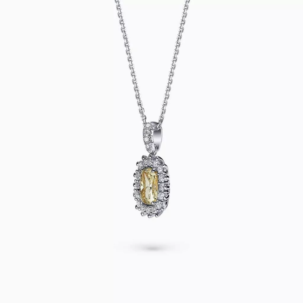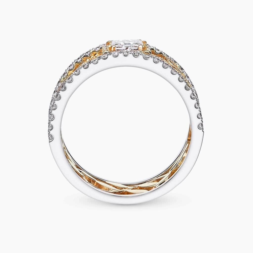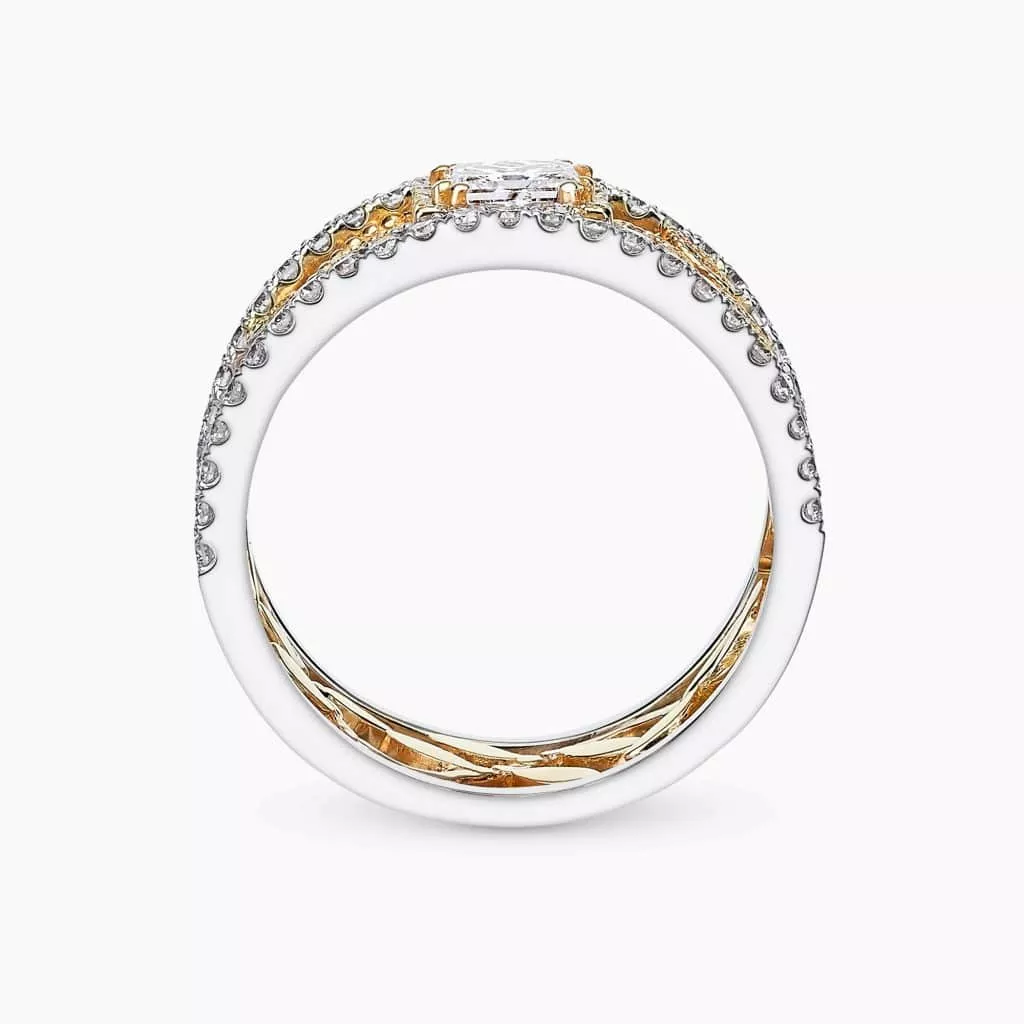 Special 14K two color Gold Open Leaf Eternity Band mounted with 0.63Ct. Fancy Light Yellow Cushion cut center Diamond.