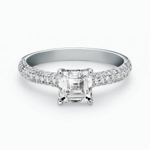 The center diamond can be customized by carat, color, and clarity to suit your individual taste.