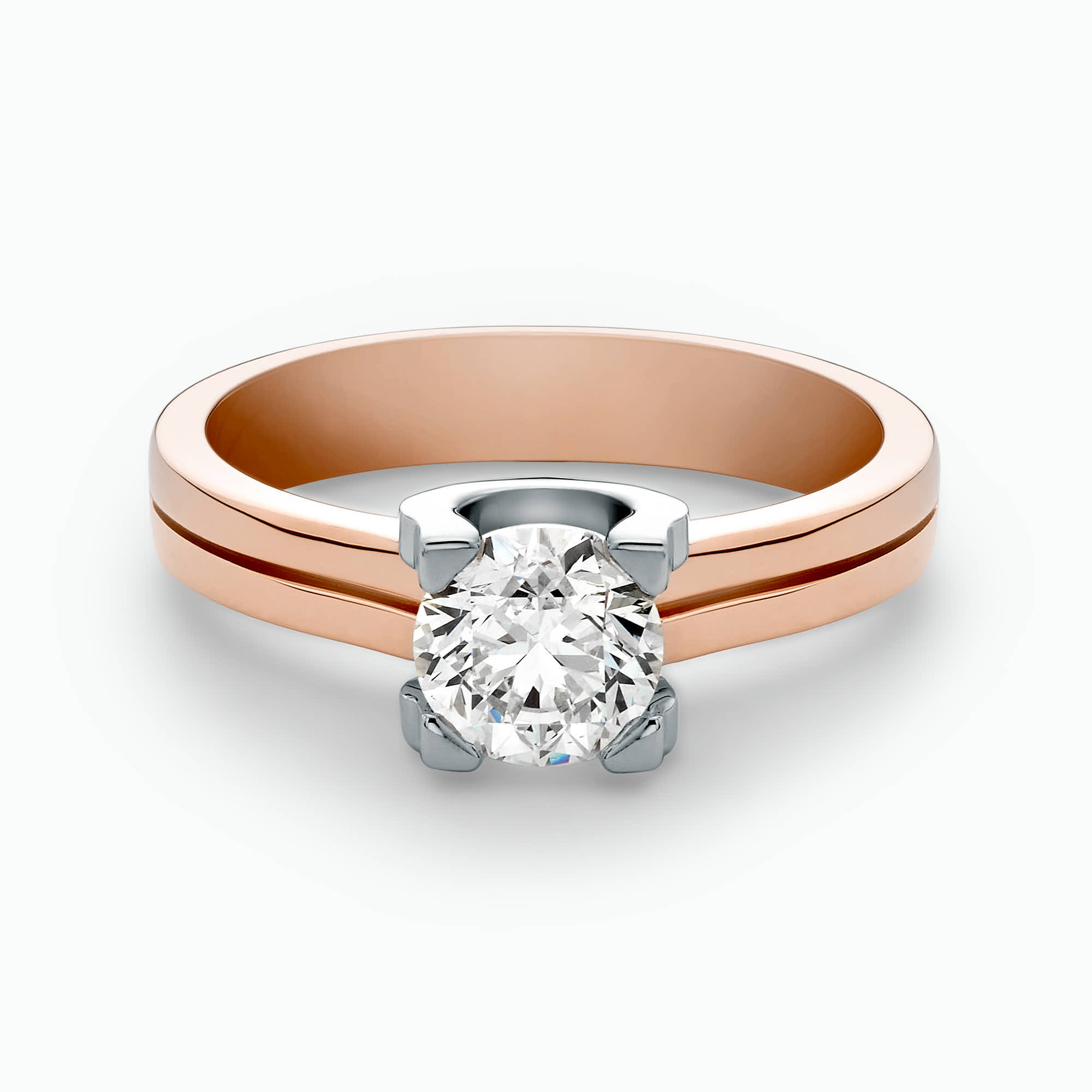 A ring, 14K gold, set with a center round cut diamond starting from 0.80 Ct.