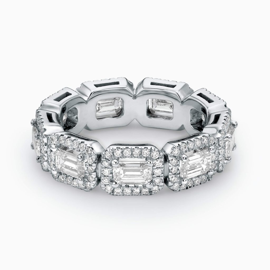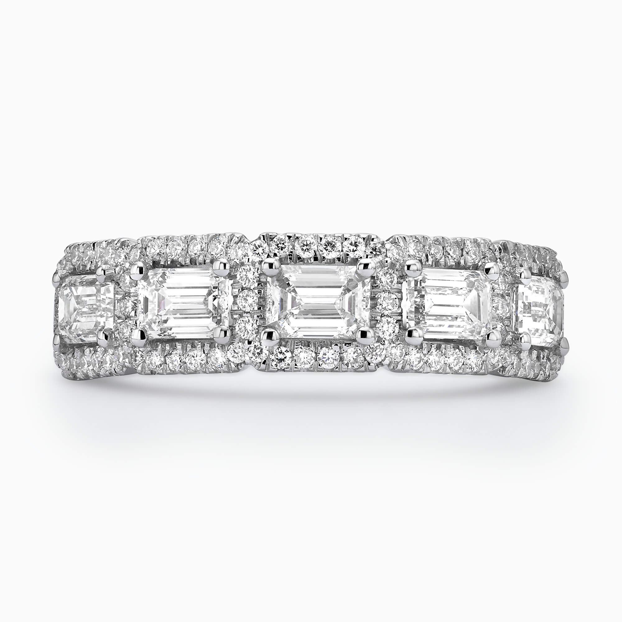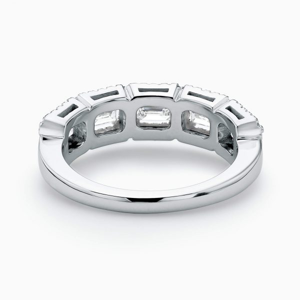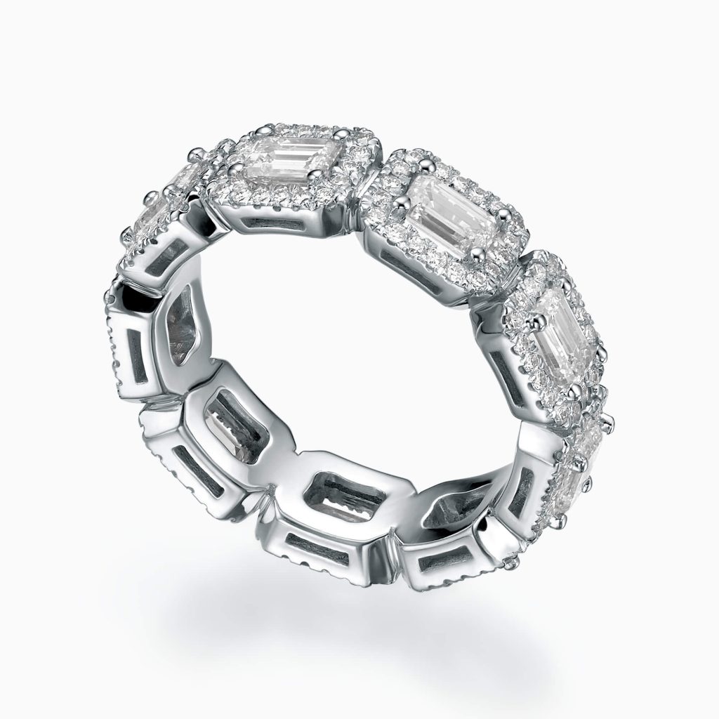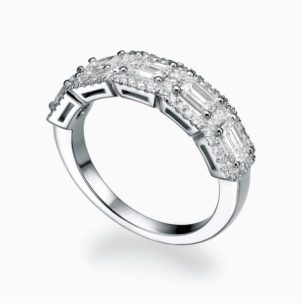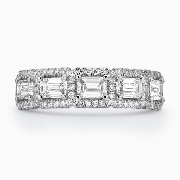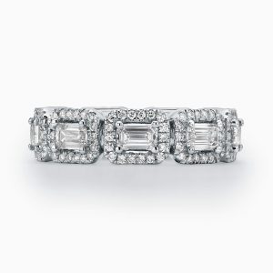 5 Emerald Cut Diamonds (Total 1.20Ct.) with 0.39Ct. Diamond Halo mounted in 14K White Gold Ring.