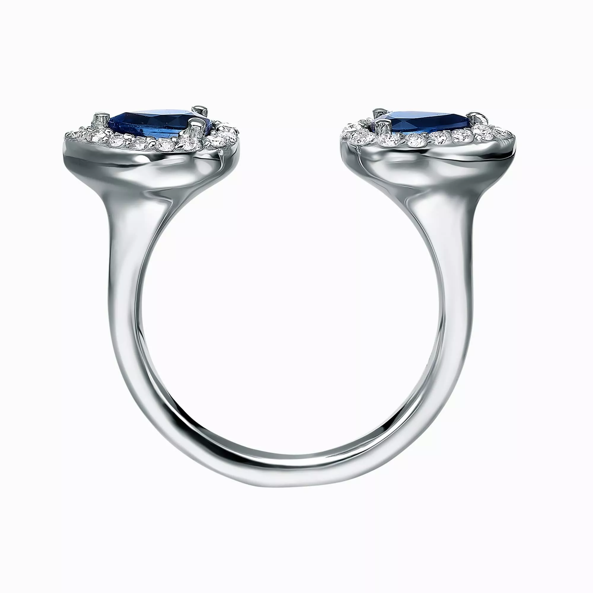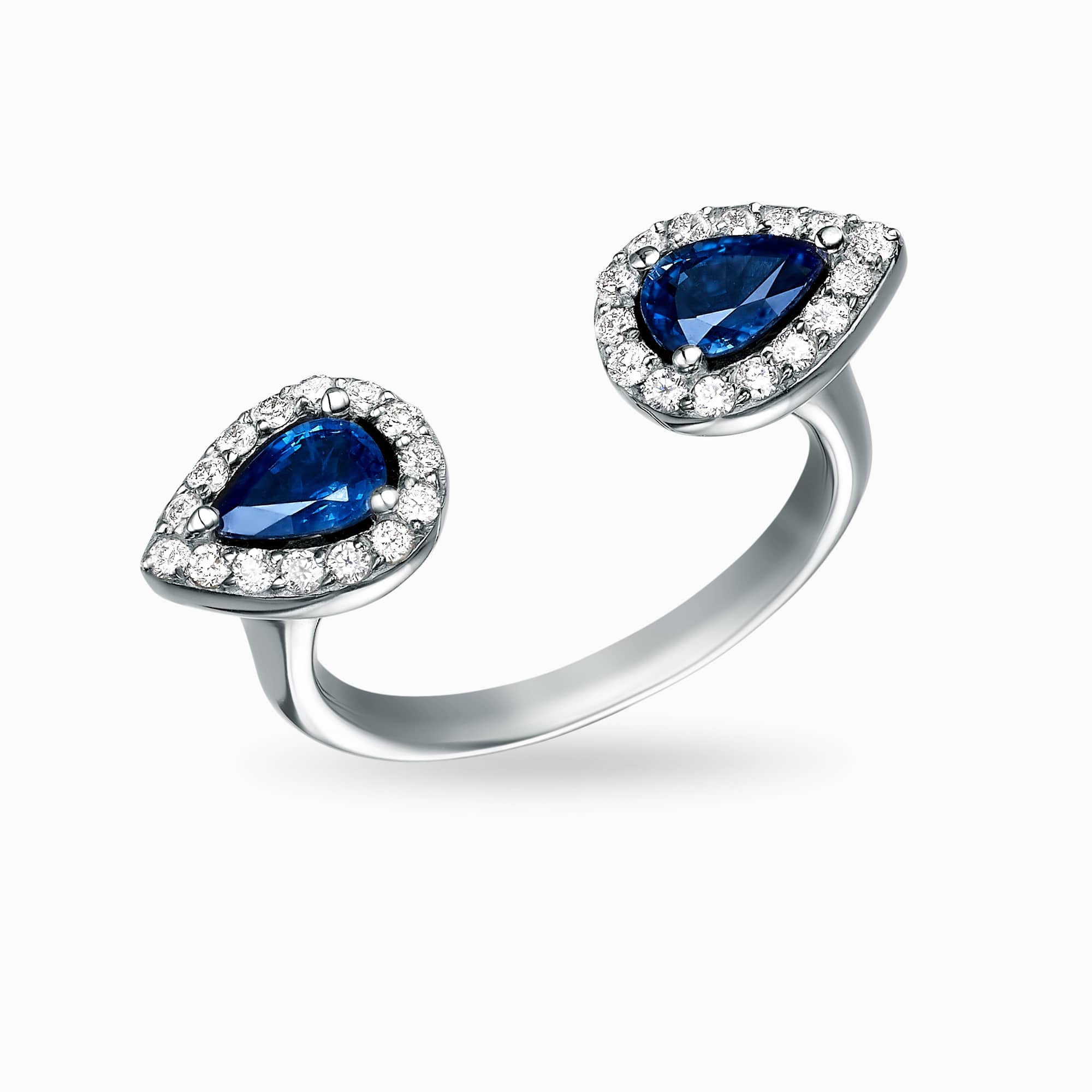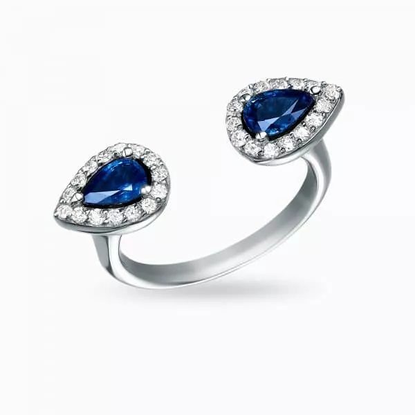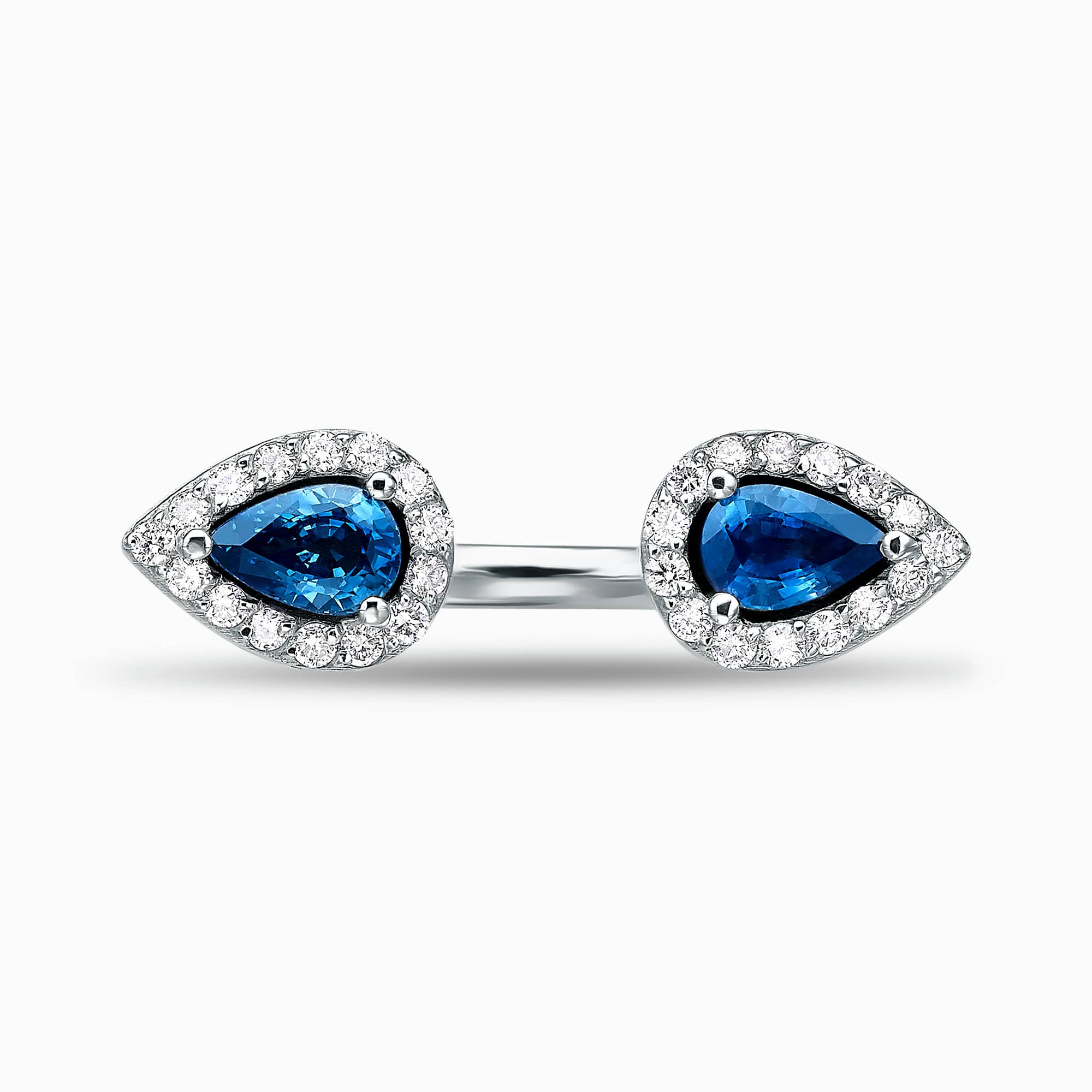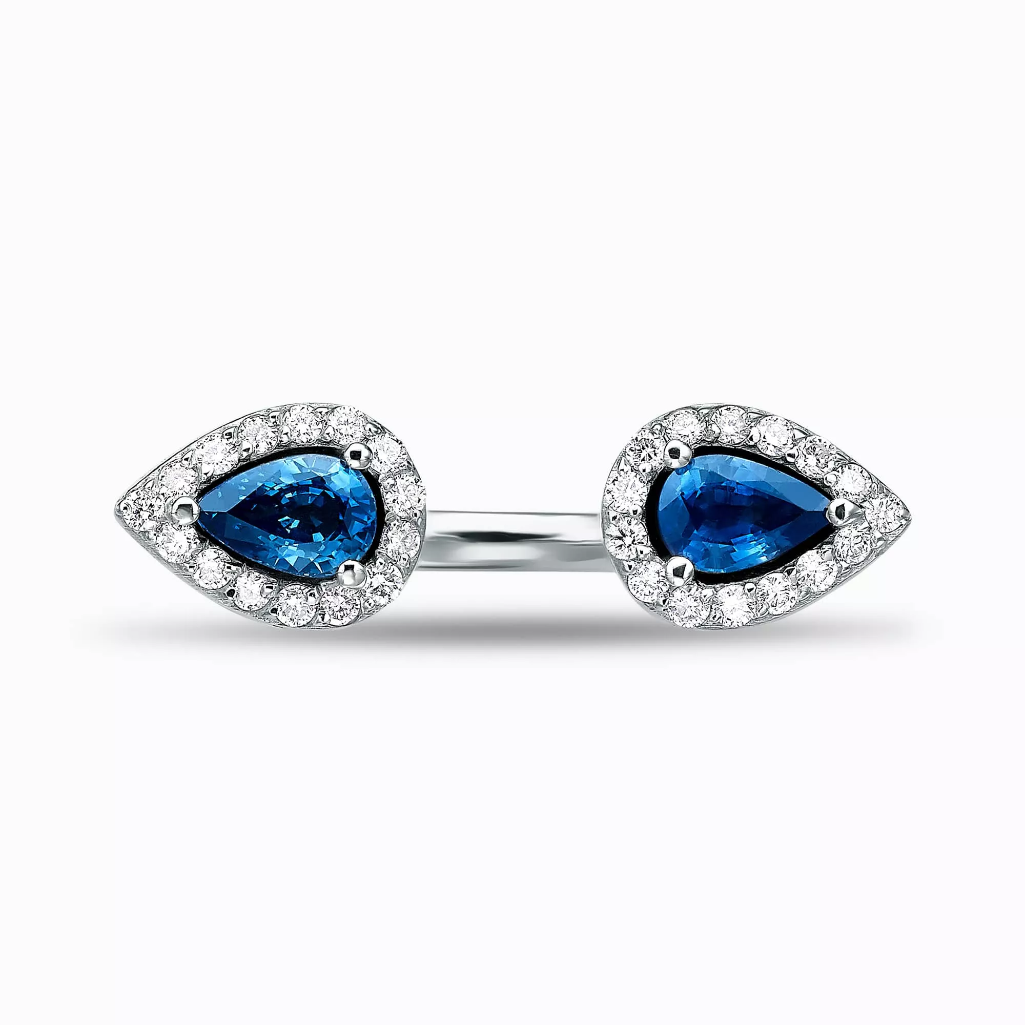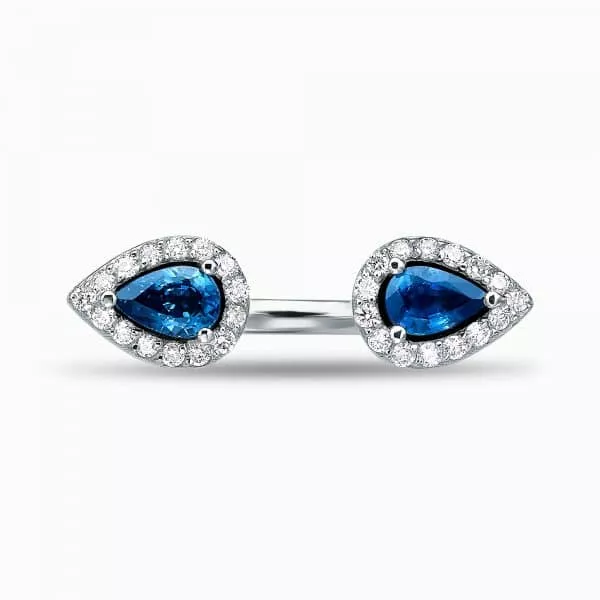 1.36Ct. Twin Pear Shape Sapphire with 0.40Ct. diamond Halo mounted in 14K Gold Ring.