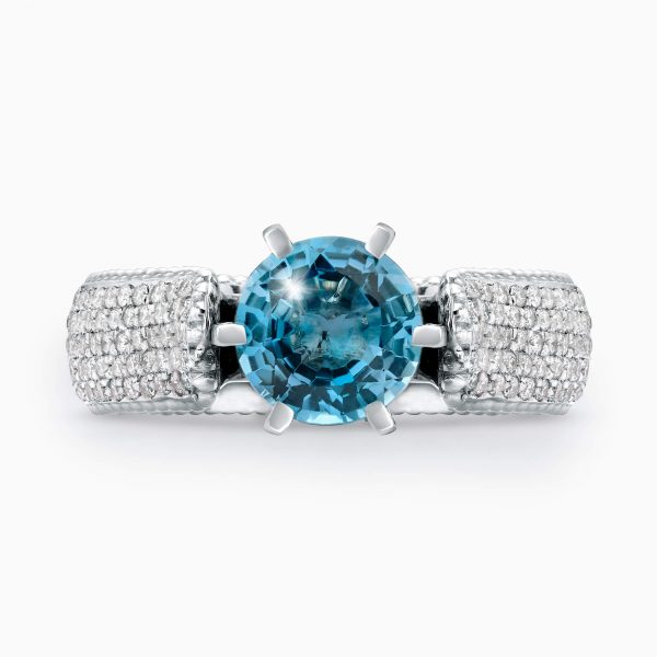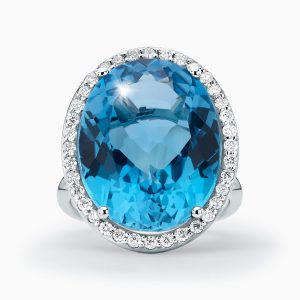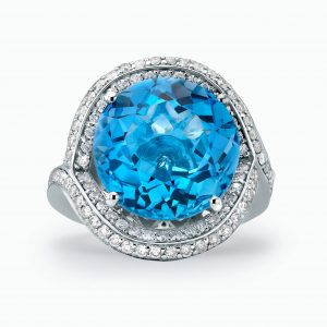 1.90Ct. Blue Topaz center Stone with 0.43Ct. Diamonds in a 14K White Gold Ring.