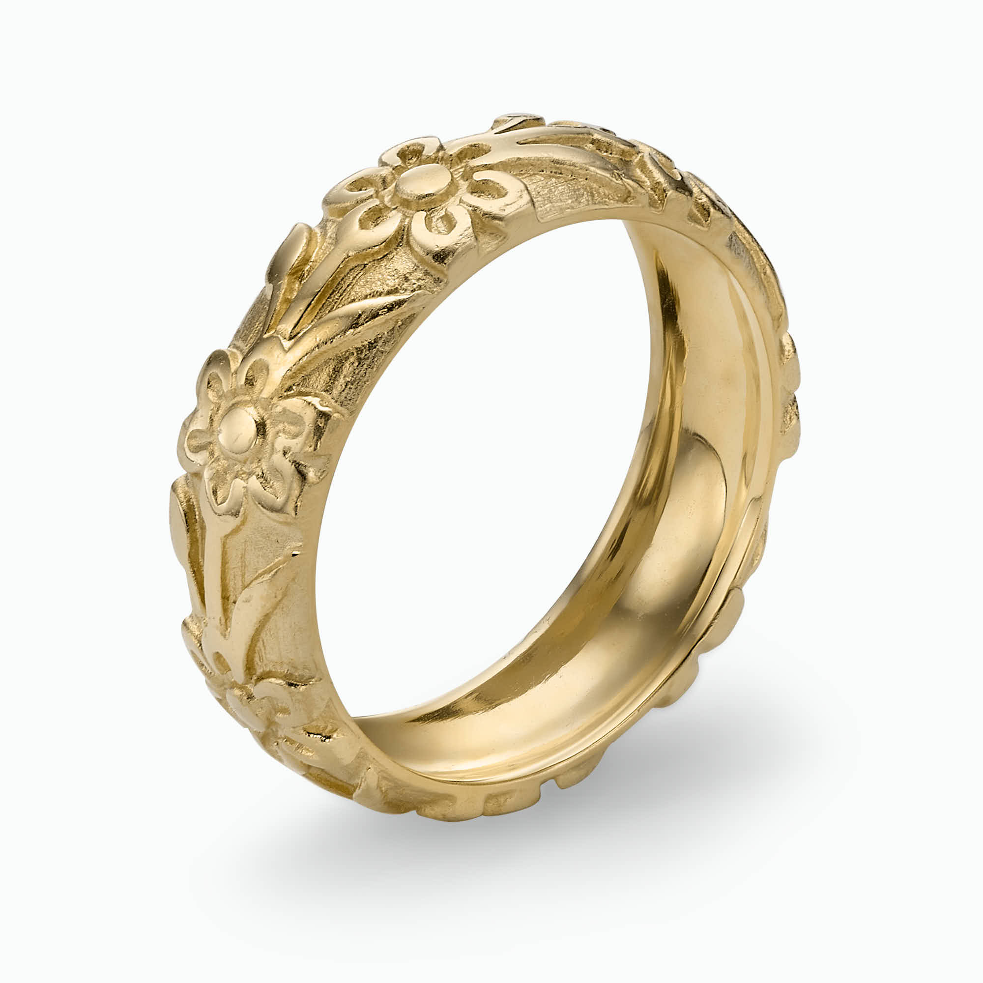 14K Gold Engraved wedding Band.