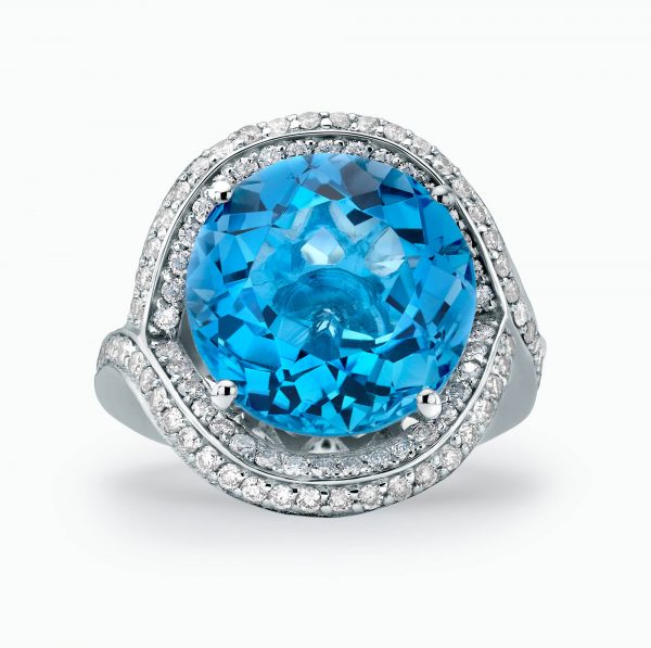 21.50Ct. Blue Topaz center Stone with 0.50Ct. Diamond setting in a 14K Gold Ring.