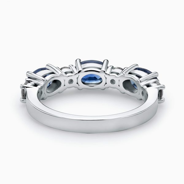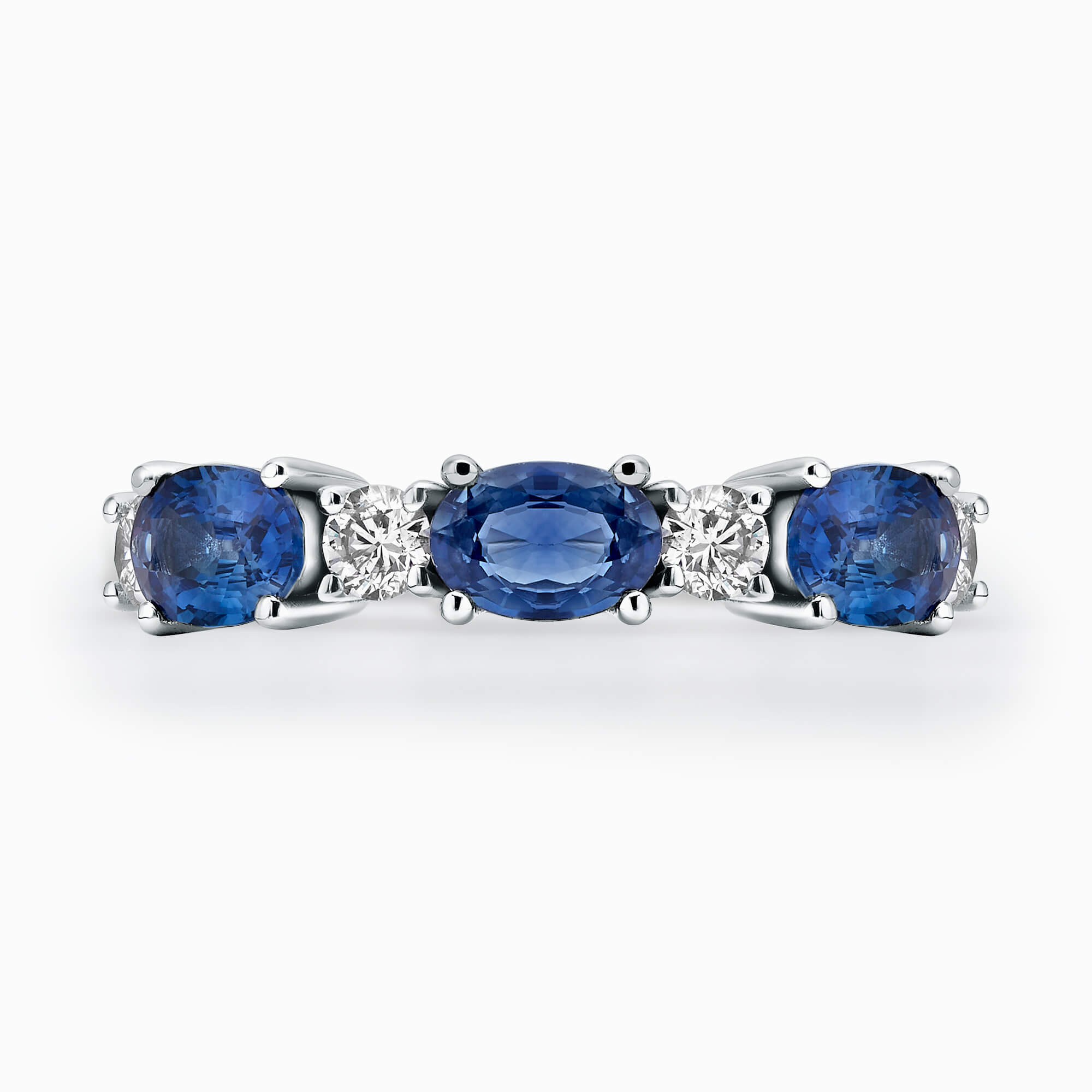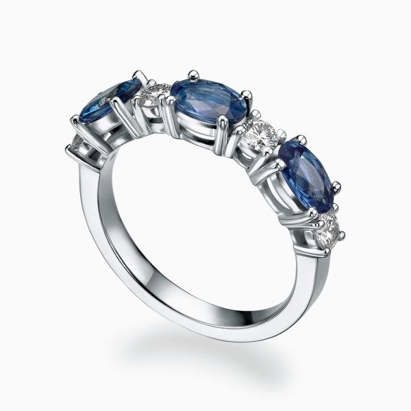 3 Oval Cut Sapphire, 1.54Ct. (Total weight) with 0.39Ct. Brilliant Cut Diamonds mounted in a 14K White Gold Ring.