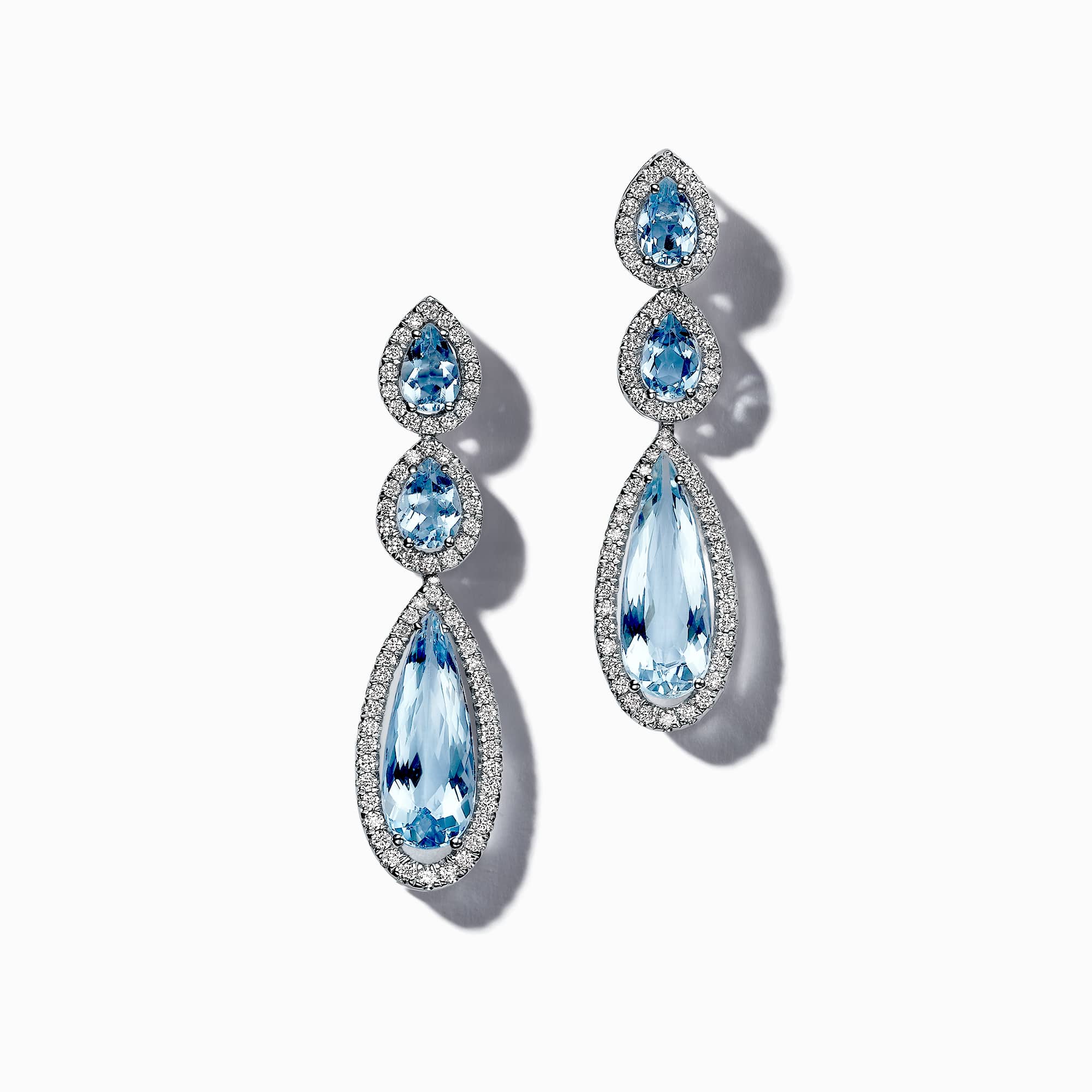 18K White Gold Earrings set with 5.71Ct. Aquamarine stones and 0.89Ct. Diamonds.