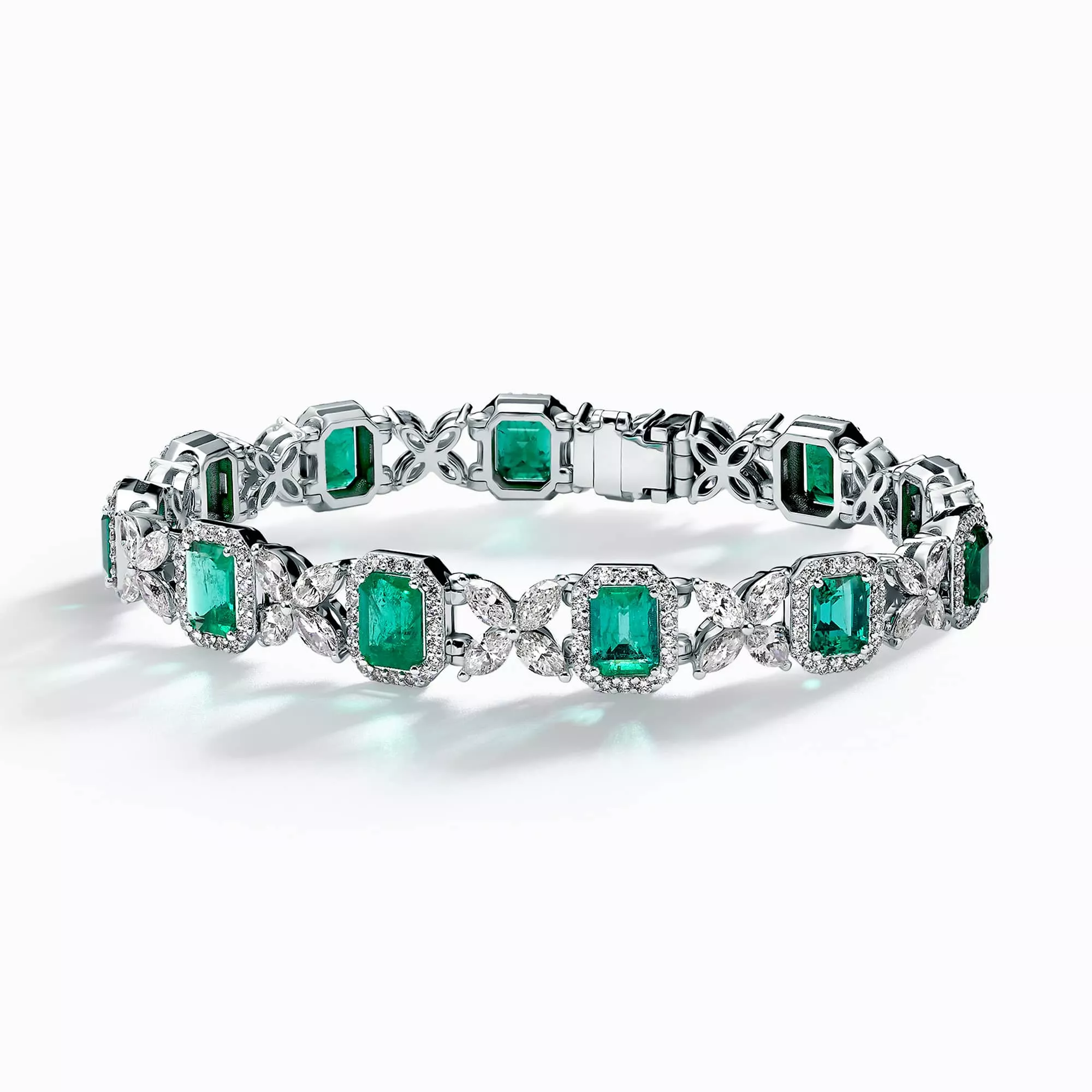 14.12Ct. Emerald Gemstones and 6.50Ct. Diamonds set in a 18K White Gold Bracelet.