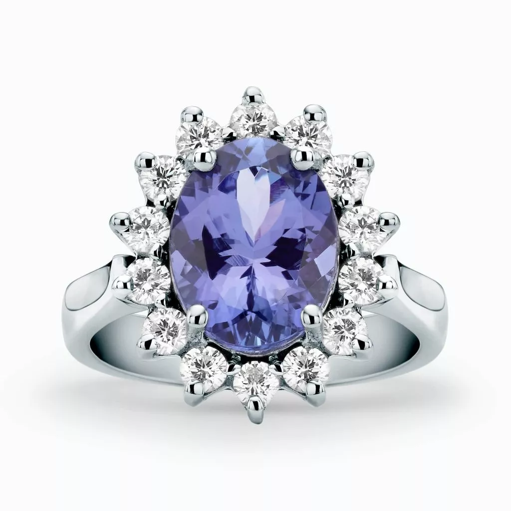 2.72Ct. Tanzanite and 1.04Ct. Diamonds setting in a 14K White Gold Ring.
