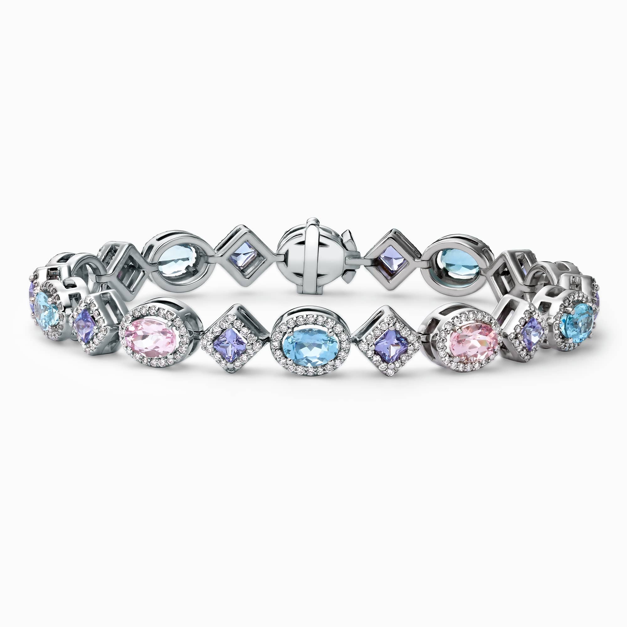 A Glorious 18K White Gold Bracelet with 7.20Ct. Aquamarine, 2.41Ct. Tanzanite, 5.70Ct. Morganite and 3.00Ct. Diamond setting.