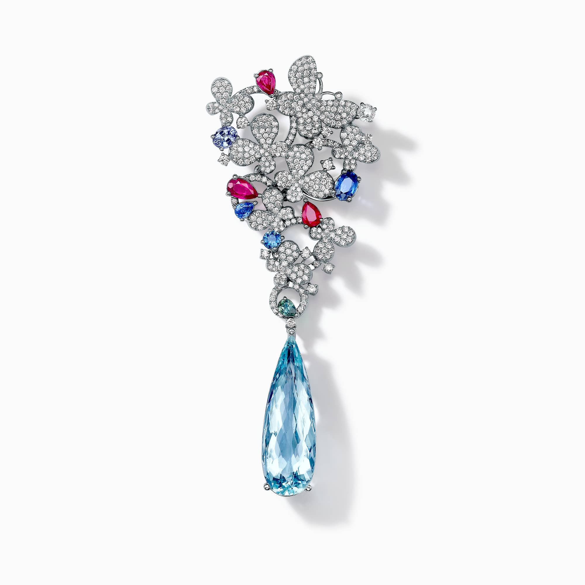 10.08Ct. Aquamarine, 1.69Ct. Ruby, 1.57Ct. Sapphire, 0.38Ct. Tanzanite with 2.50Ct. Diamonds setting in a 18K White Gold Designed Butterfly Pendant.