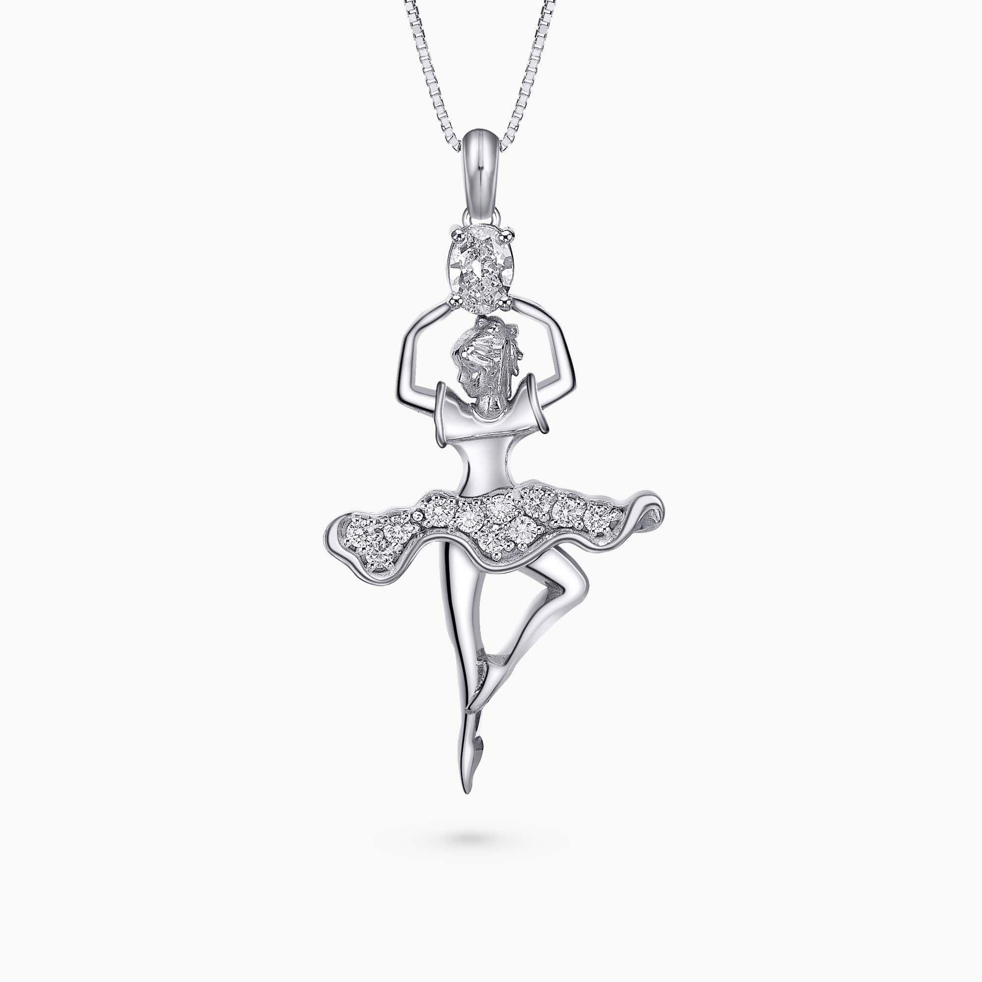 A beautiful Ballerina Pendant mounted in 18K White Gold with a 0.49Ct. Oval cut Diamond and 0.30Ct. Diamond setting.