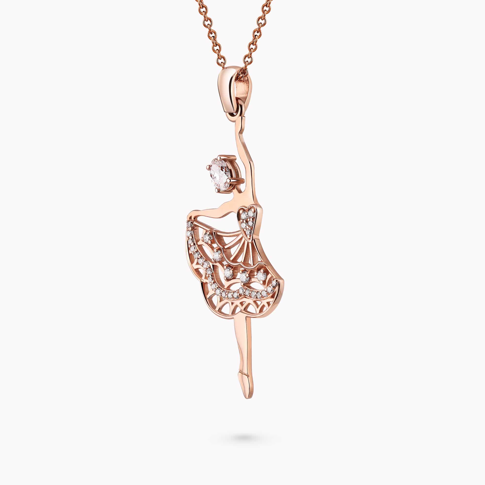 A beautiful Ballerina Pendant mounted in 18K Rose Gold with a 0.19Ct. Oval cut Diamond and 0.20Ct. Diamond setting.