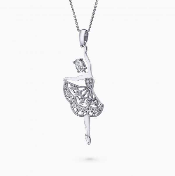A beautiful Ballerina Pendant mounted in 18K White Gold with a 0.30Ct. Oval cut Diamond and 0.20Ct. Diamond setting.