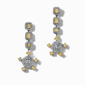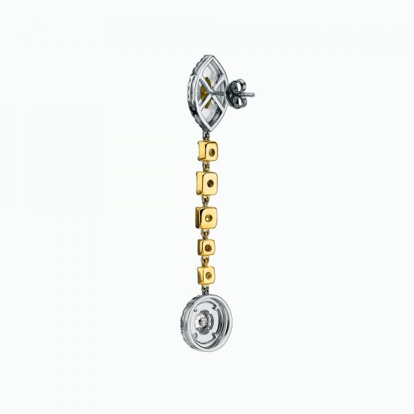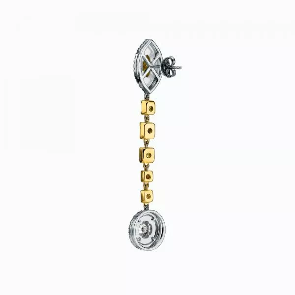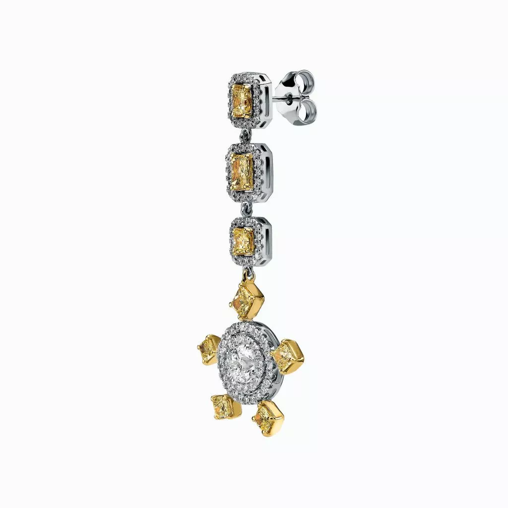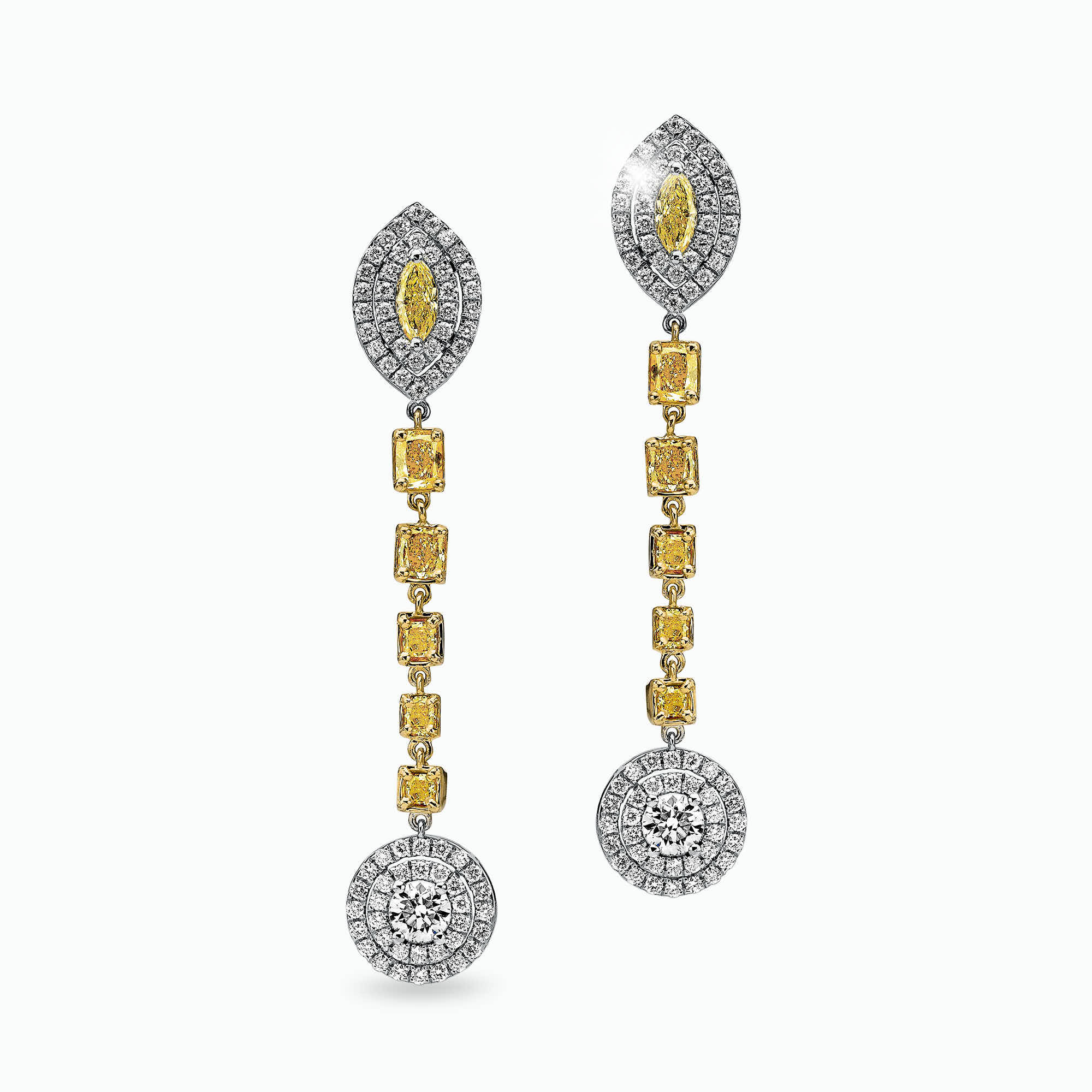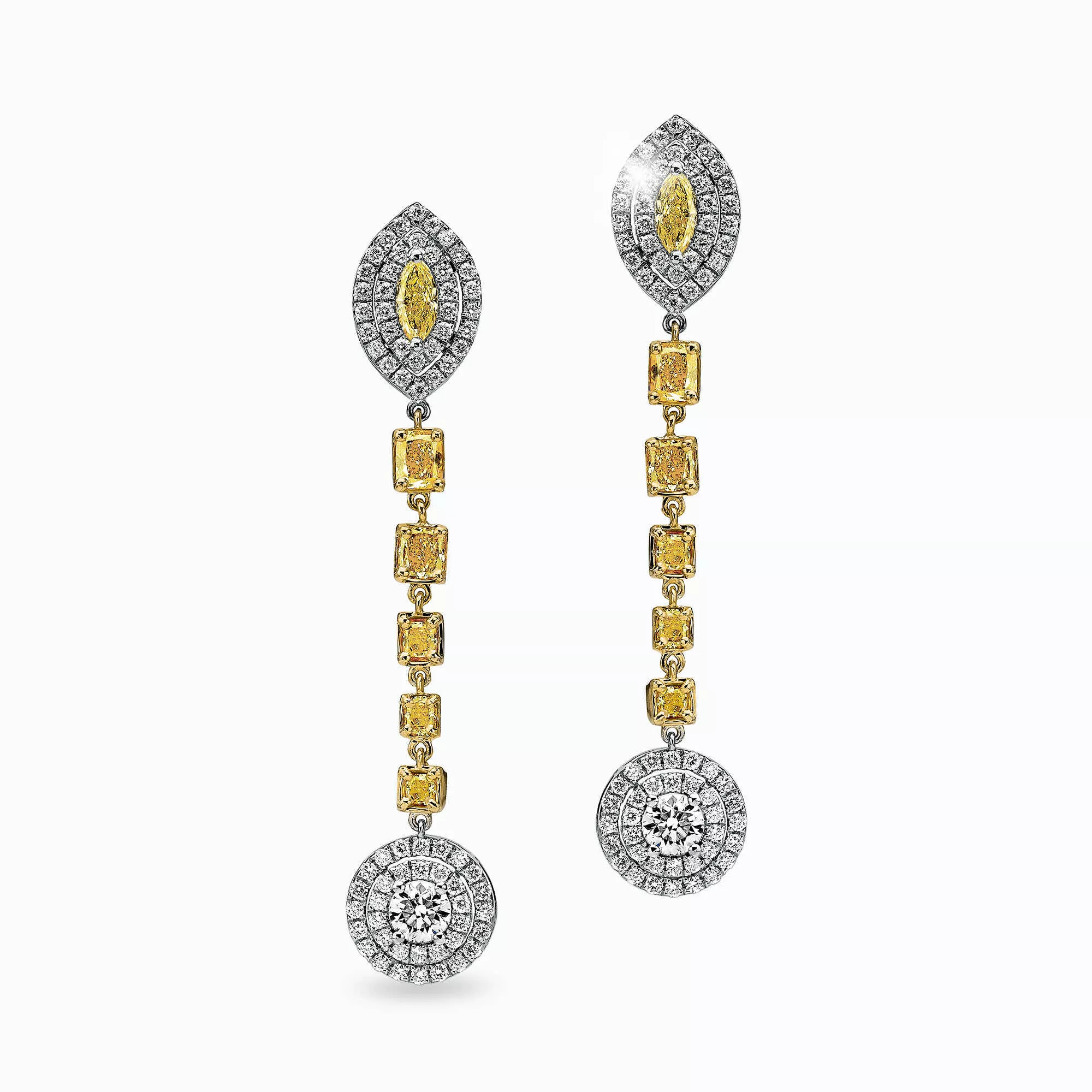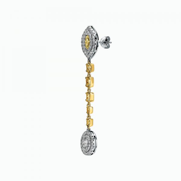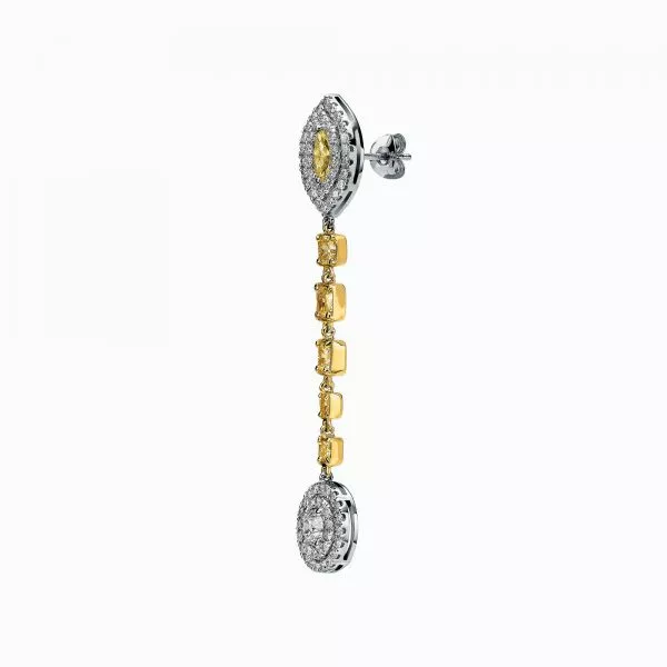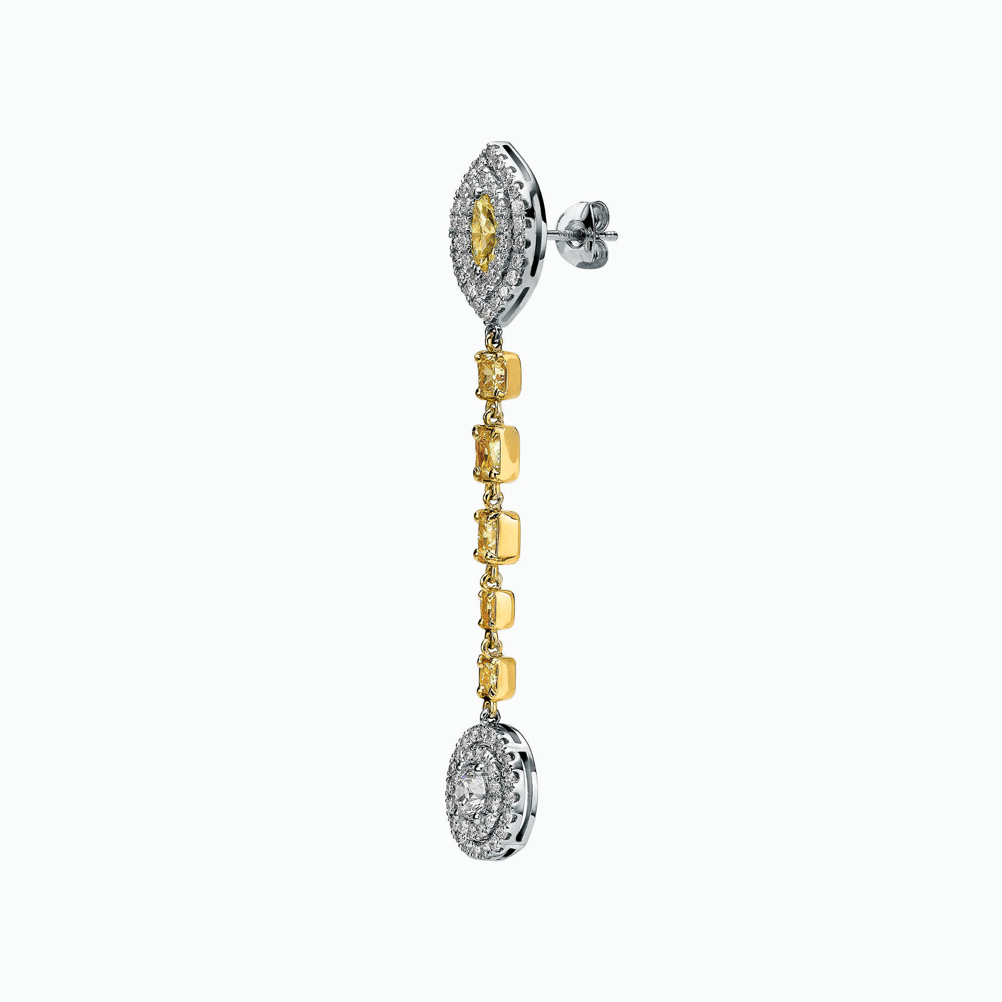 0.33Ct. L SI1 and and 0.31Ct. L SI1 Brilliant Cut with 0.75Ct. Fancy Yellow Diamonds mounted in a Beautiful 18K White Gold Earrings with 1.15Ct. Diamond setting.