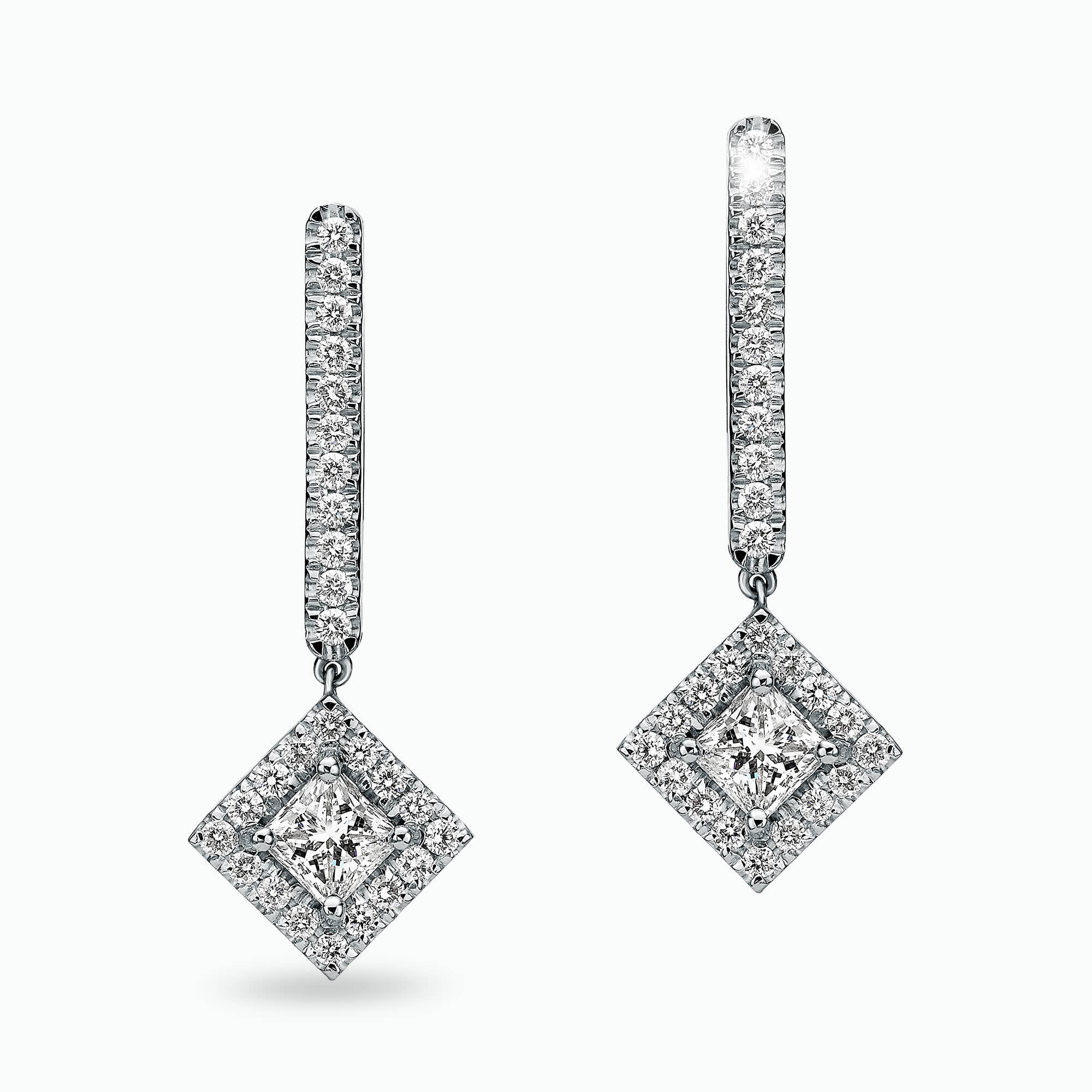 0.51Ct. and 0.52Ct. G VS2 Princess cut Diamonds, mounted in a Beautiful 14K White Gold Earrings with 0.70Ct. Diamond setting.