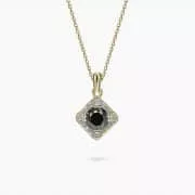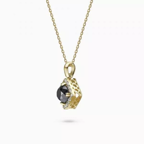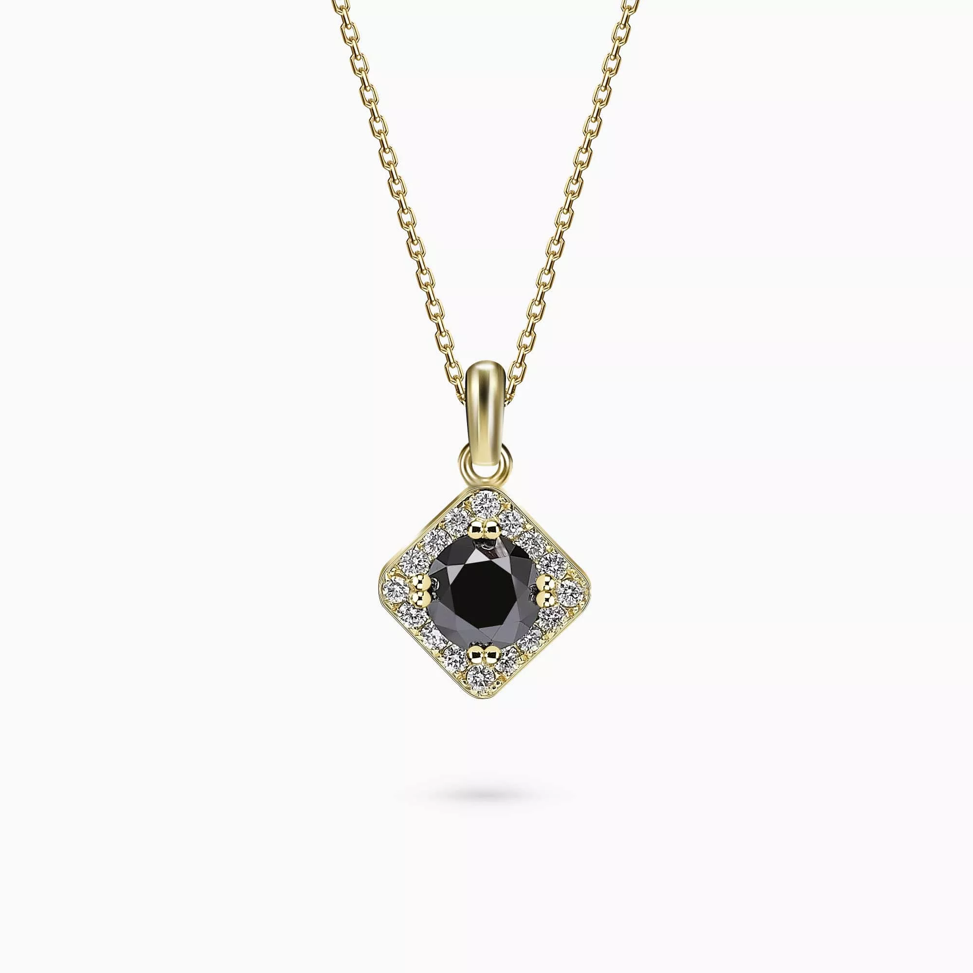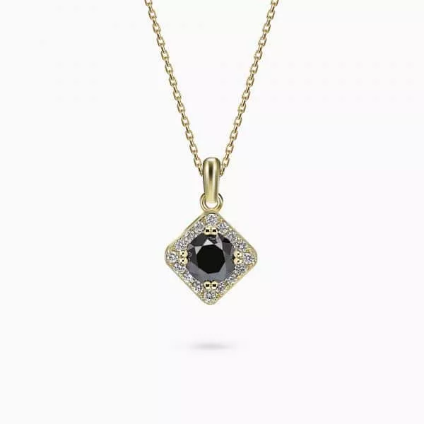 1.36Ct. Black Brilliant Cut center Diamond with 0.30Ct. Diamond Halo in 14K Yellow Gold Pendant.