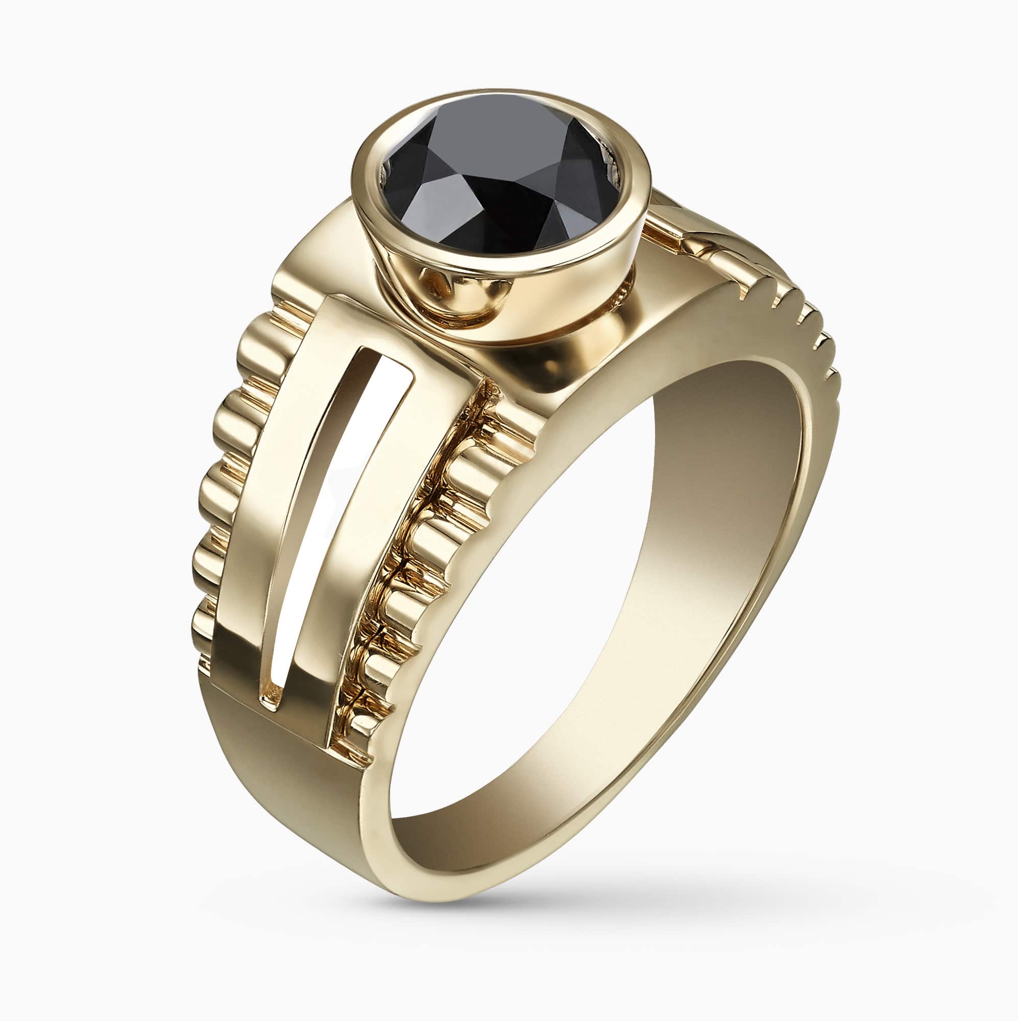 2.20Ct. Black Diamond in a 14K Yellow Gold Ring.