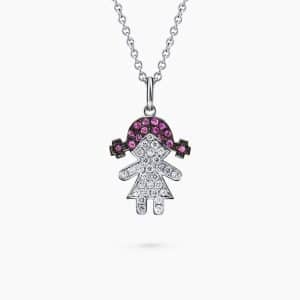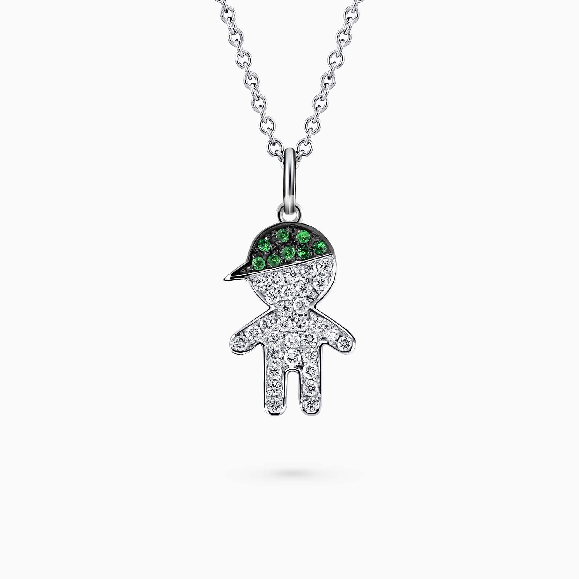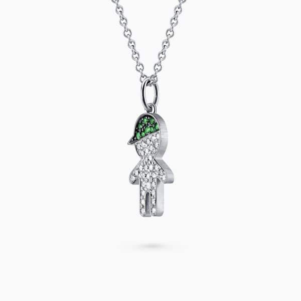 Boy Figure Pendant set with 0.13Ct. Diamond and 0.08Ct. Tsavorite mounted in 14K White Gold.