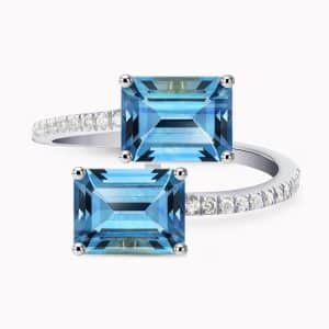 14K White Gold Bypass Ring with 1.40Ct Blue Topaz and 1.40Ct Amethyst center stones, set with 0.18Ct Diamonds.