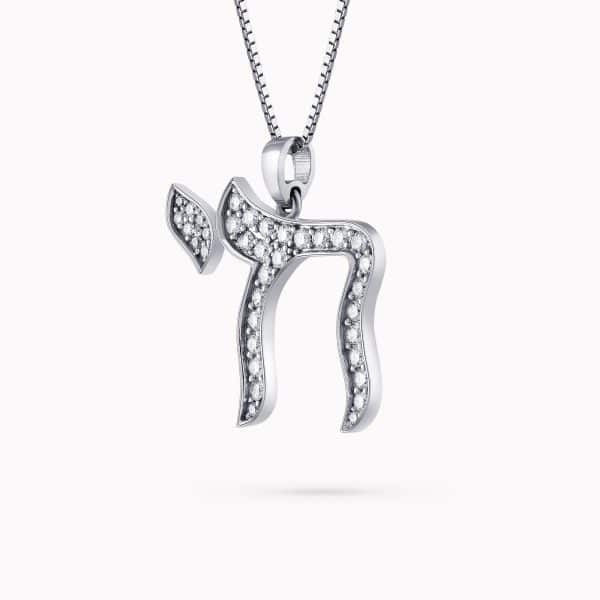0.58Ct. Diamond in a 14K White Gold “Chai” Pendant.