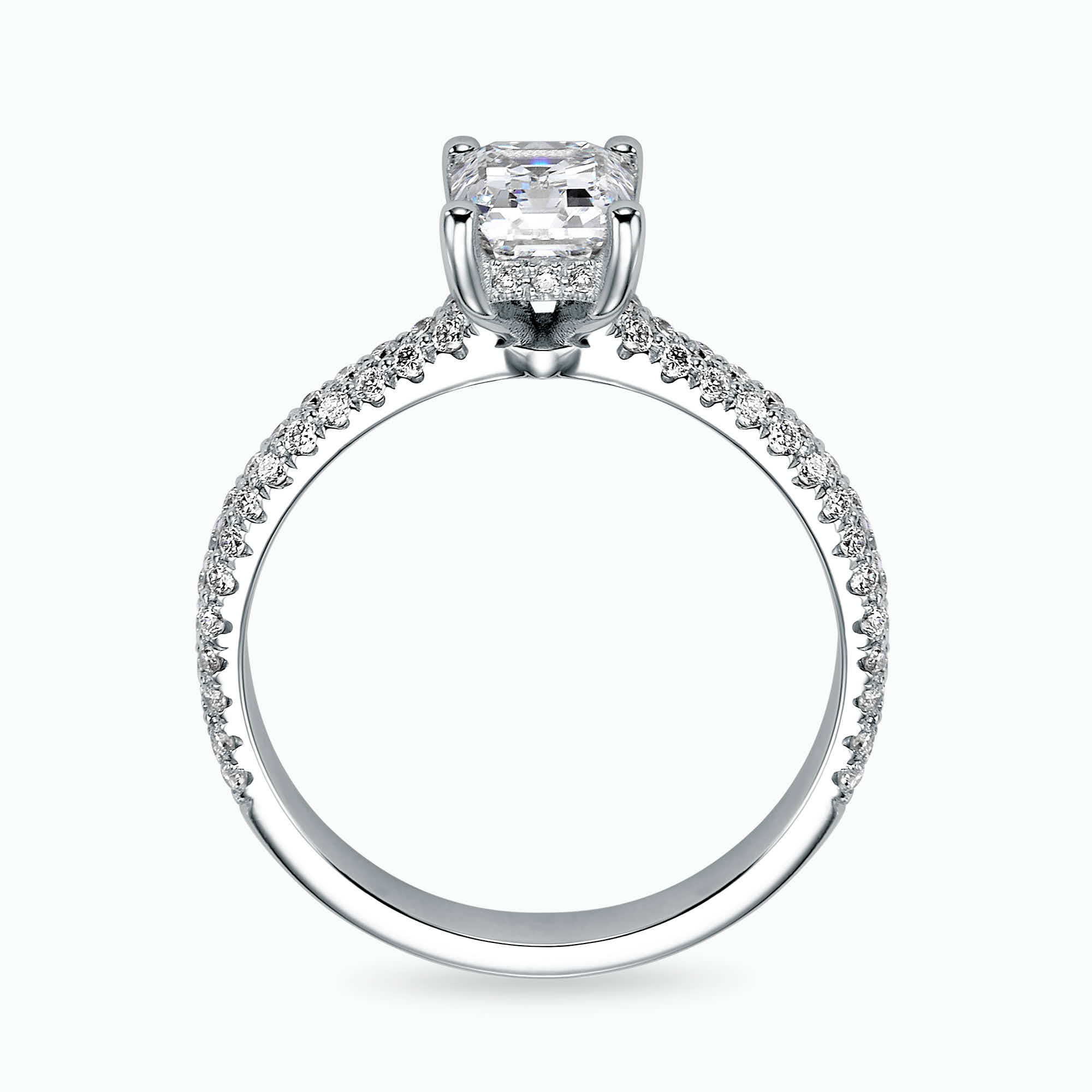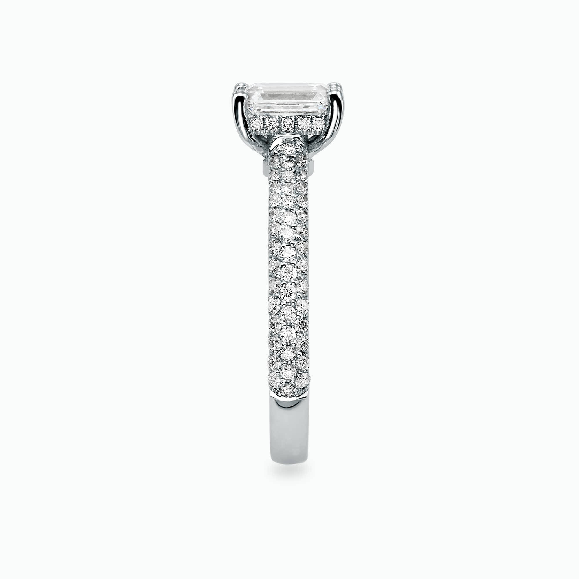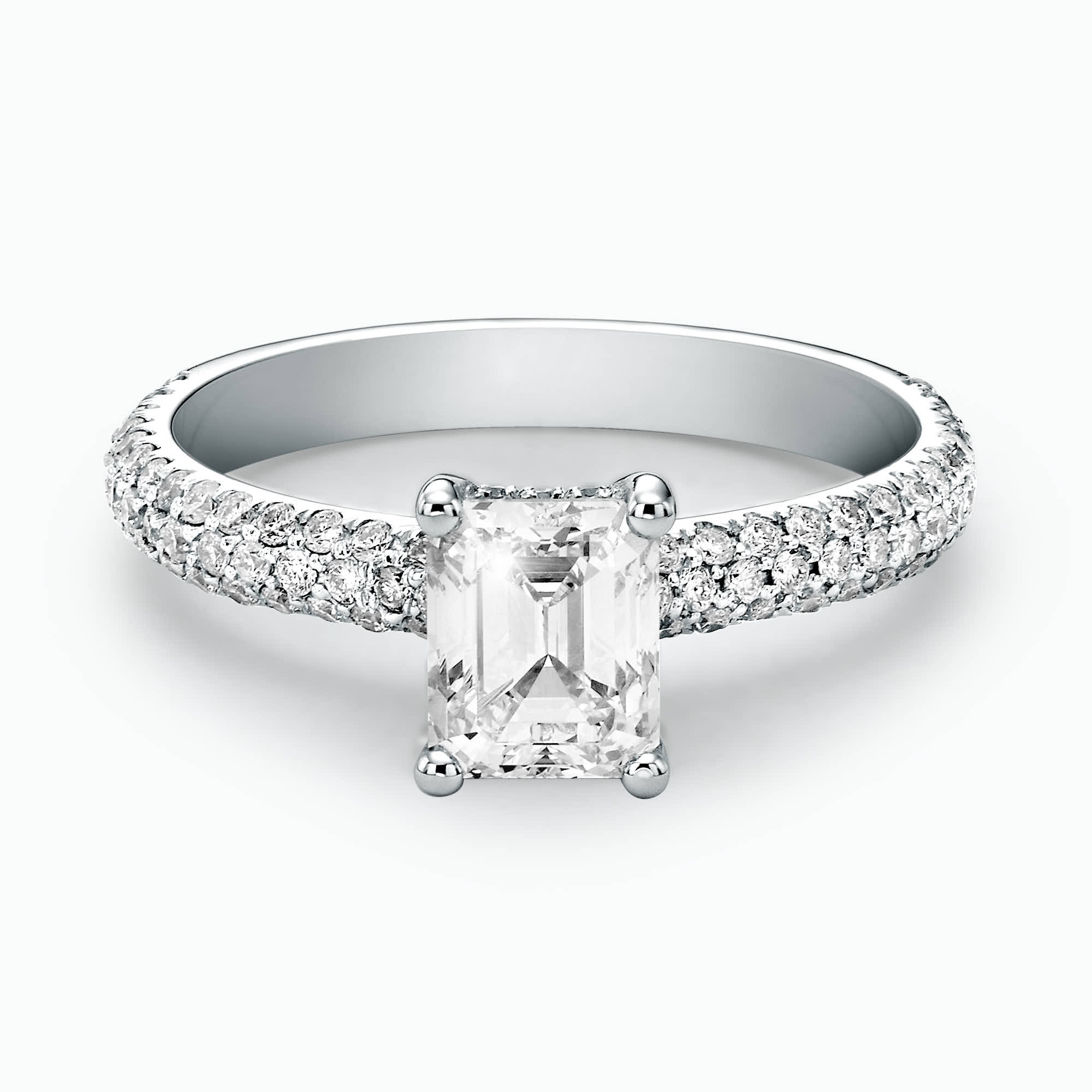 Emerald Cut center diamond starting from 0.30 Ct., mounted in a 14K Gold Ring with 0.62Ct. Diamond setting.