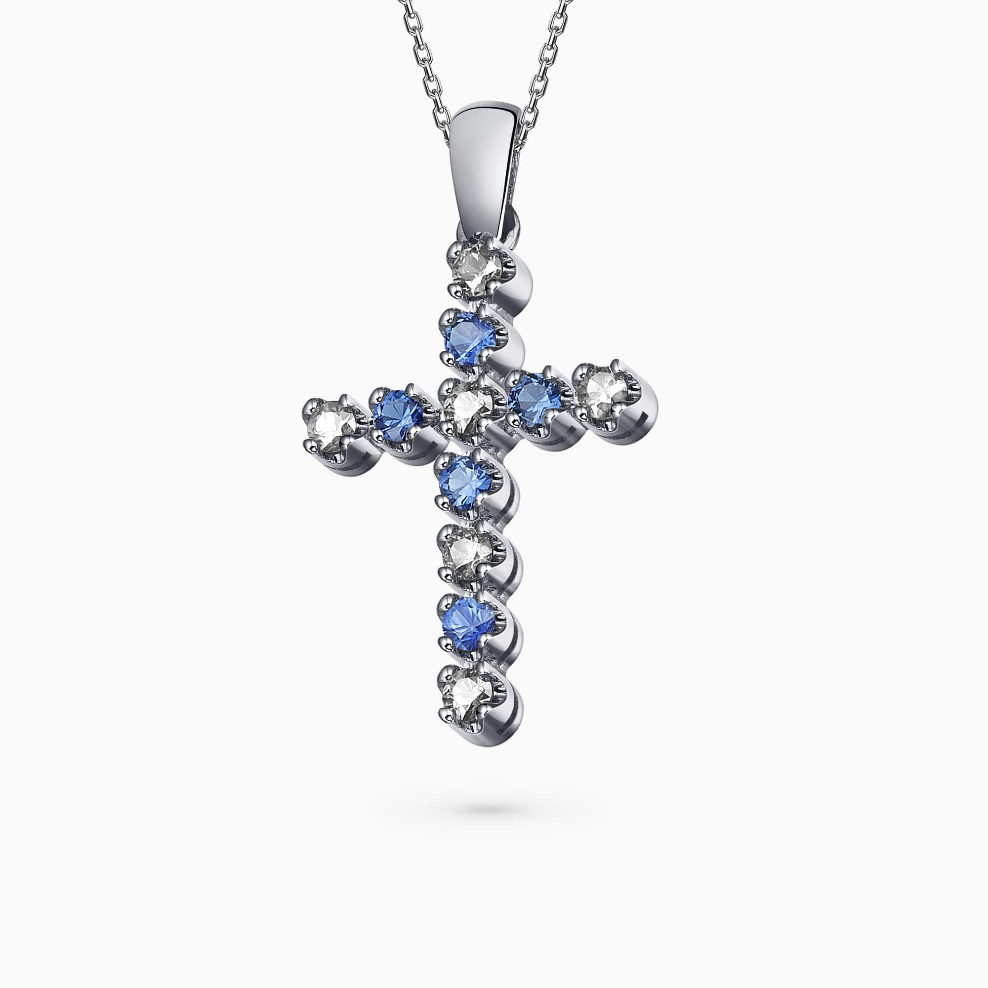 14K White gold pendant set with 0.30Ct. brilliant cut Sapphire and 0.18Ct. brilliant cut Diamonds.
