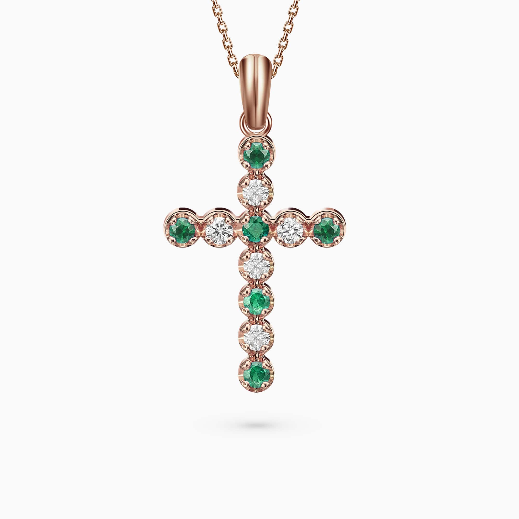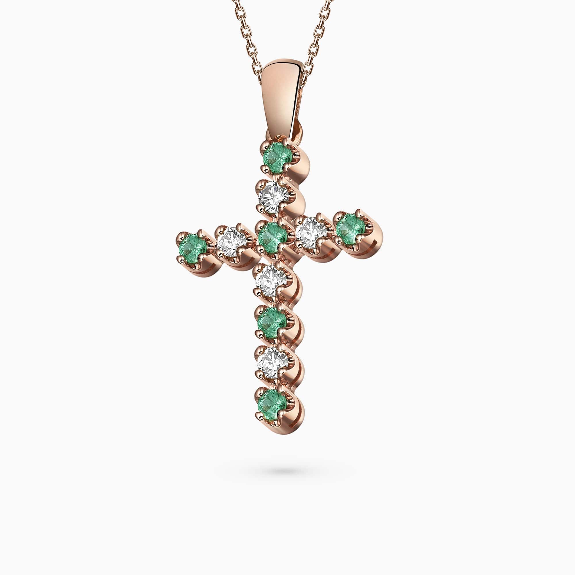 14K Rose gold pendant set with 0.16Ct. brilliant cut Emeralds and 0.18Ct. brilliant cut Diamonds.