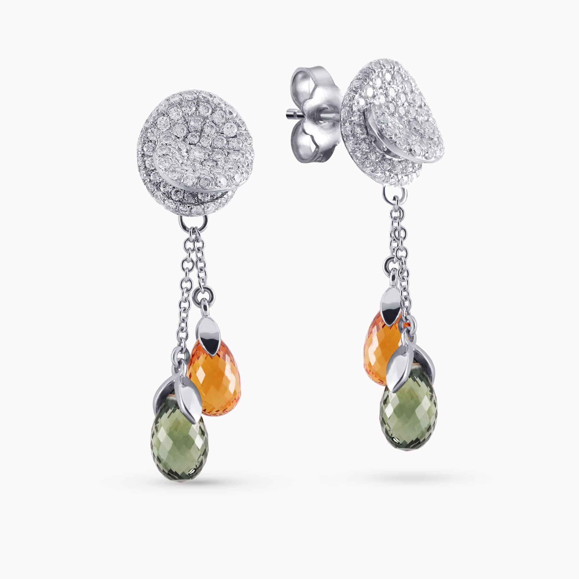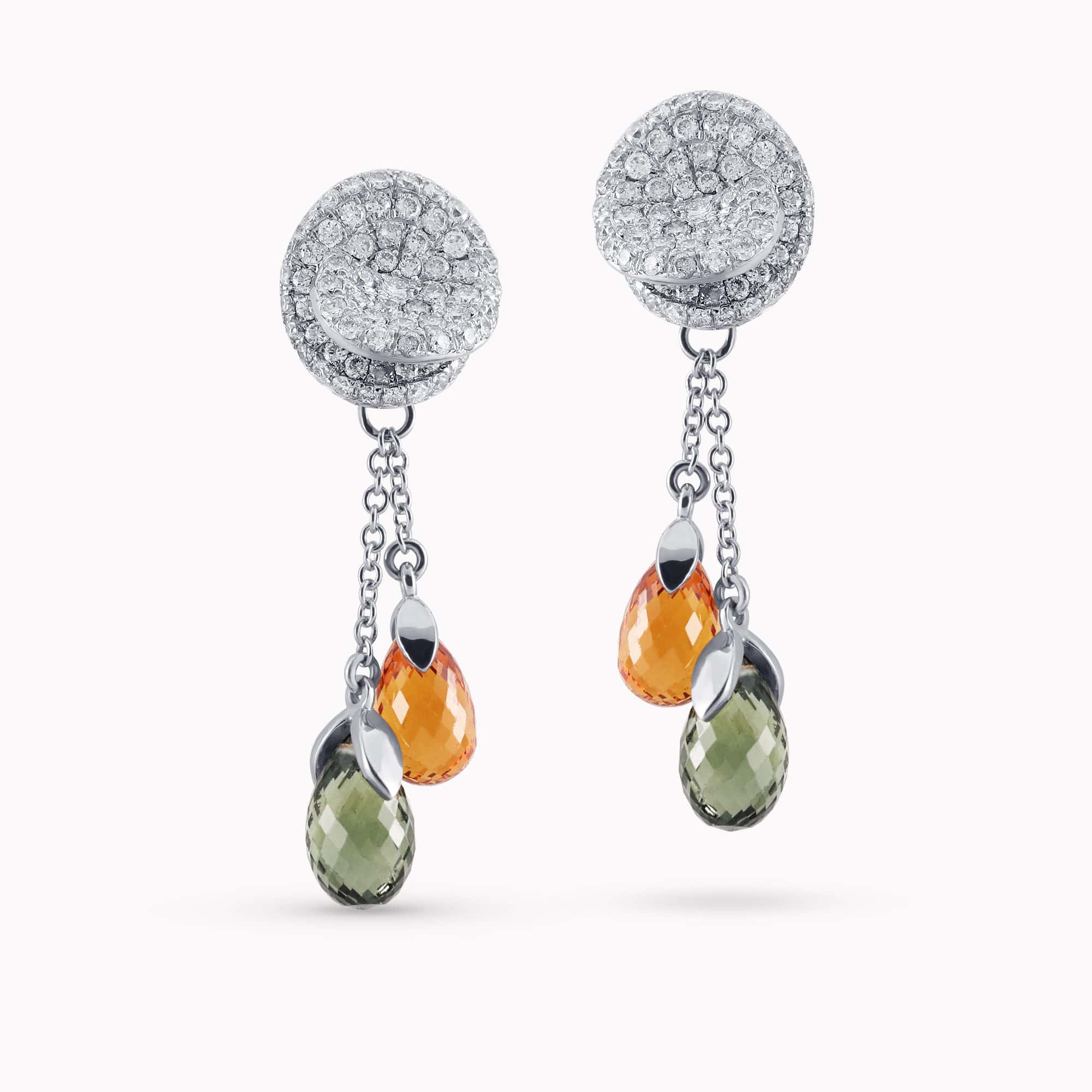 7.54Ct. Sapphire Gemstones with 1.30Ct. Diamonds set in 14K White Gold Earrings.