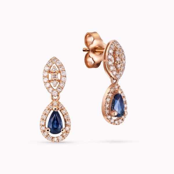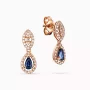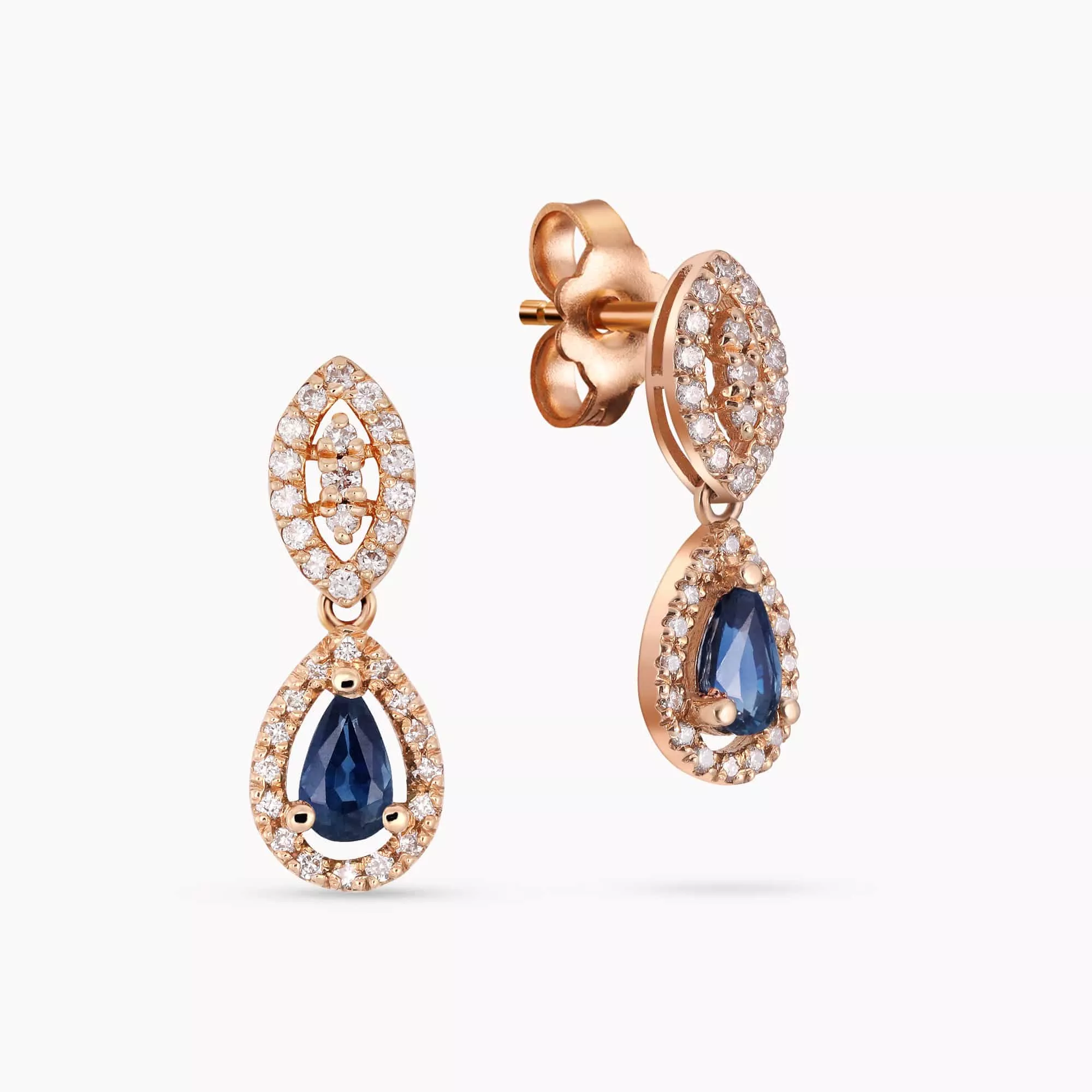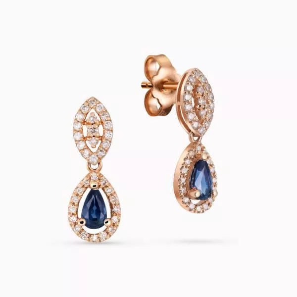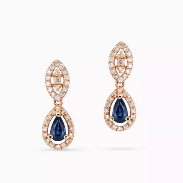 14K Rose Gold Drop Earrings set with 0.62Ct. Sapphire Gem stones and 0.28Ct. Diamonds.