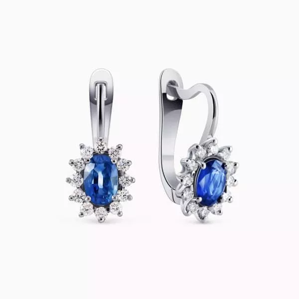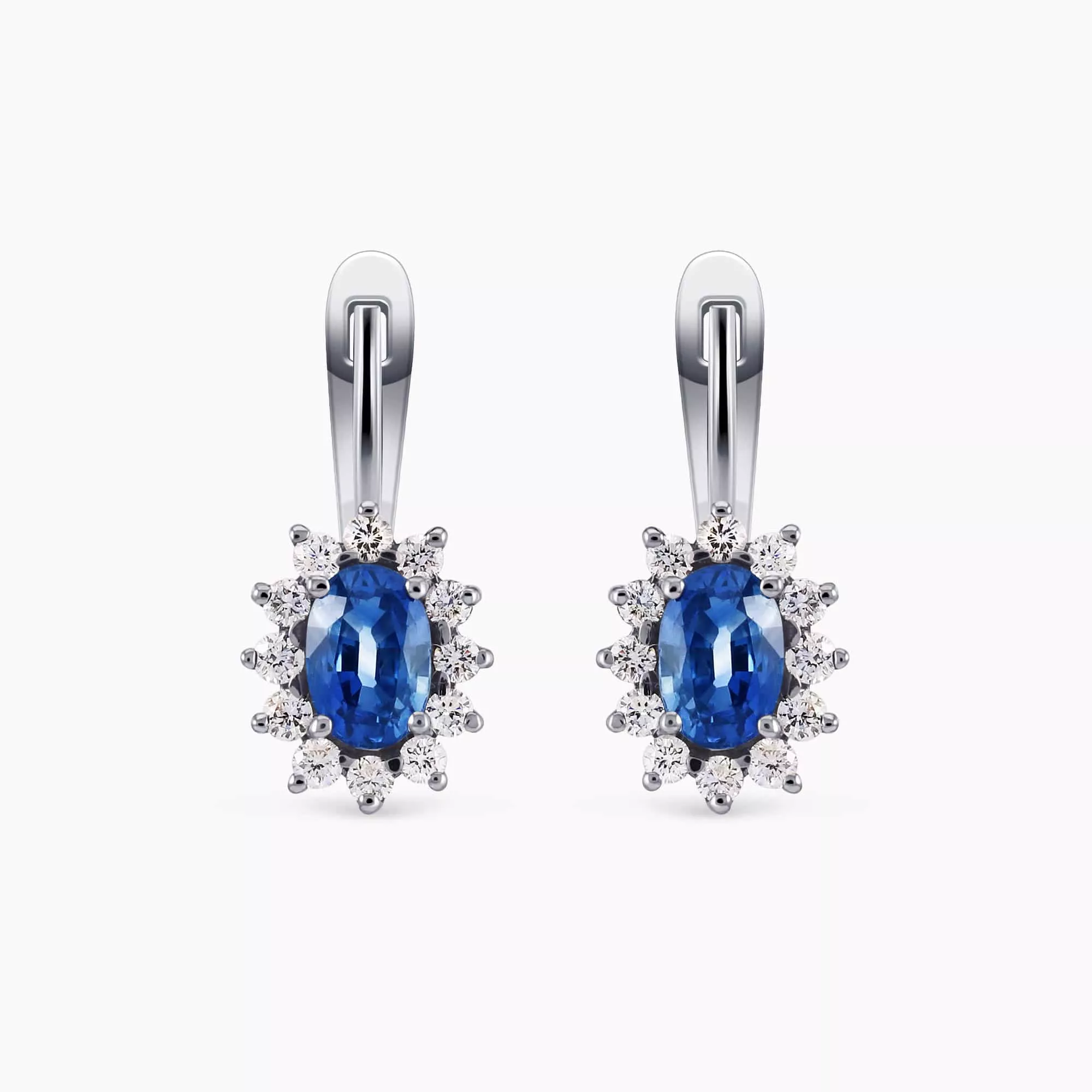 1.06Ct. Sapphire and 0.42Ct. Diamond set in a 14K White Gold Earrings.