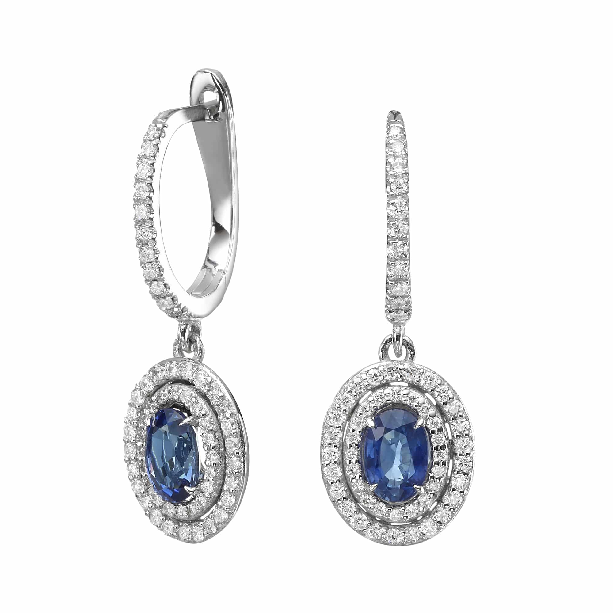 1.15Ct. Sapphire and 0.58Ct. Diamond set in a 14K Gold Earrings.