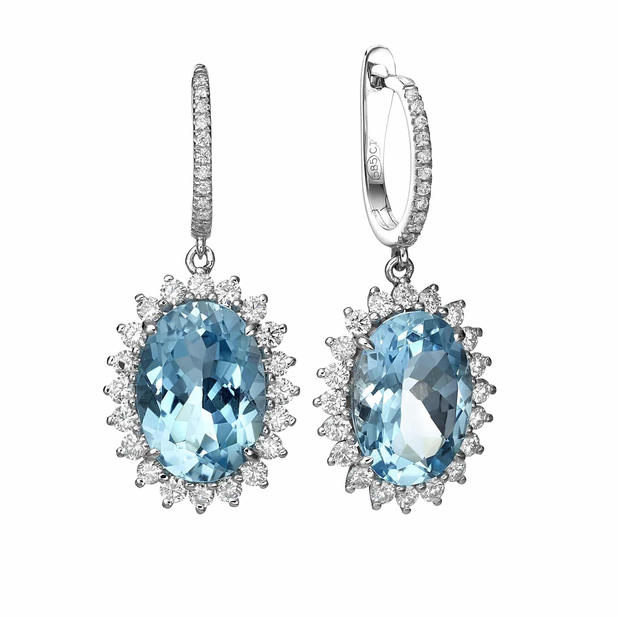 14K White Gold Earrings set with 11.50Ct. Blue Topaz stones and 0.87Ct. Diamonds.