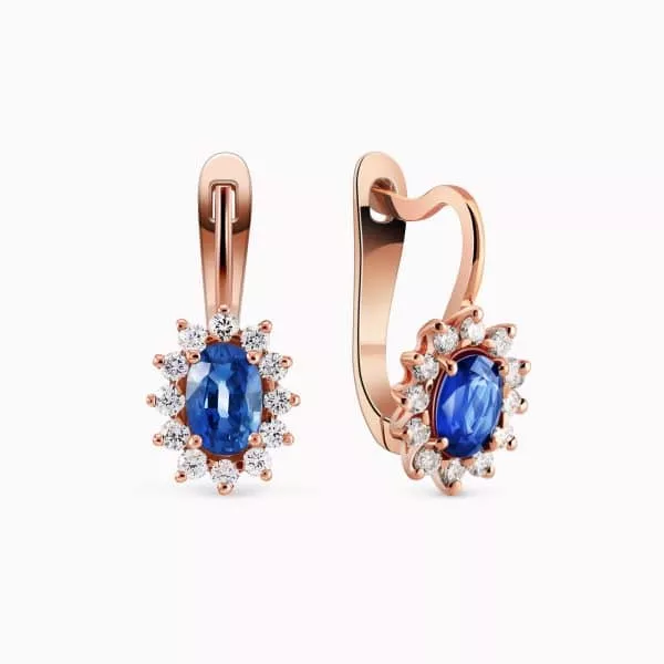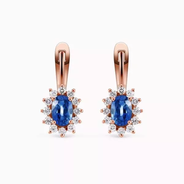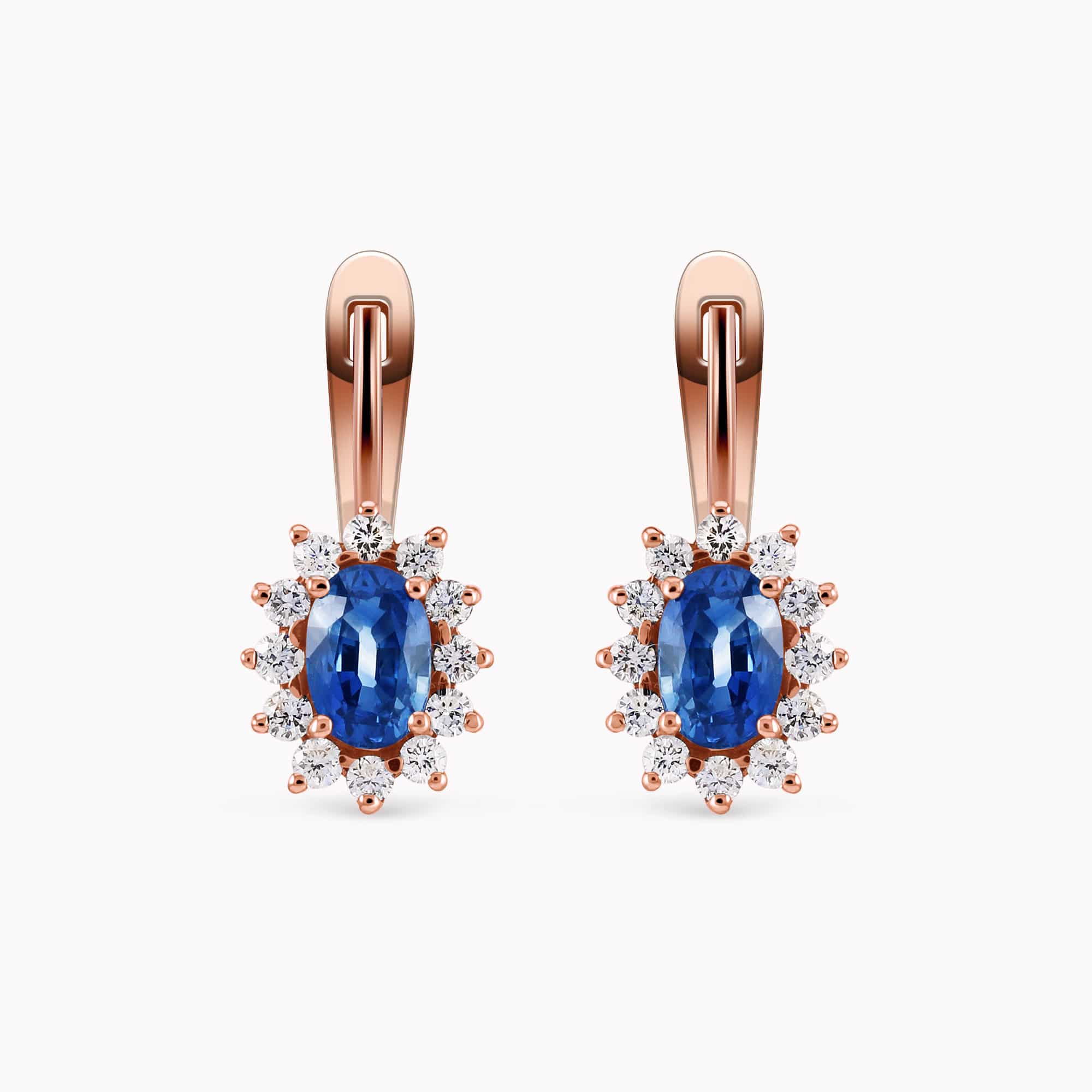 1.06Ct. Sapphire and 0.42Ct. Diamond set in a 14K Rose Gold Earrings.