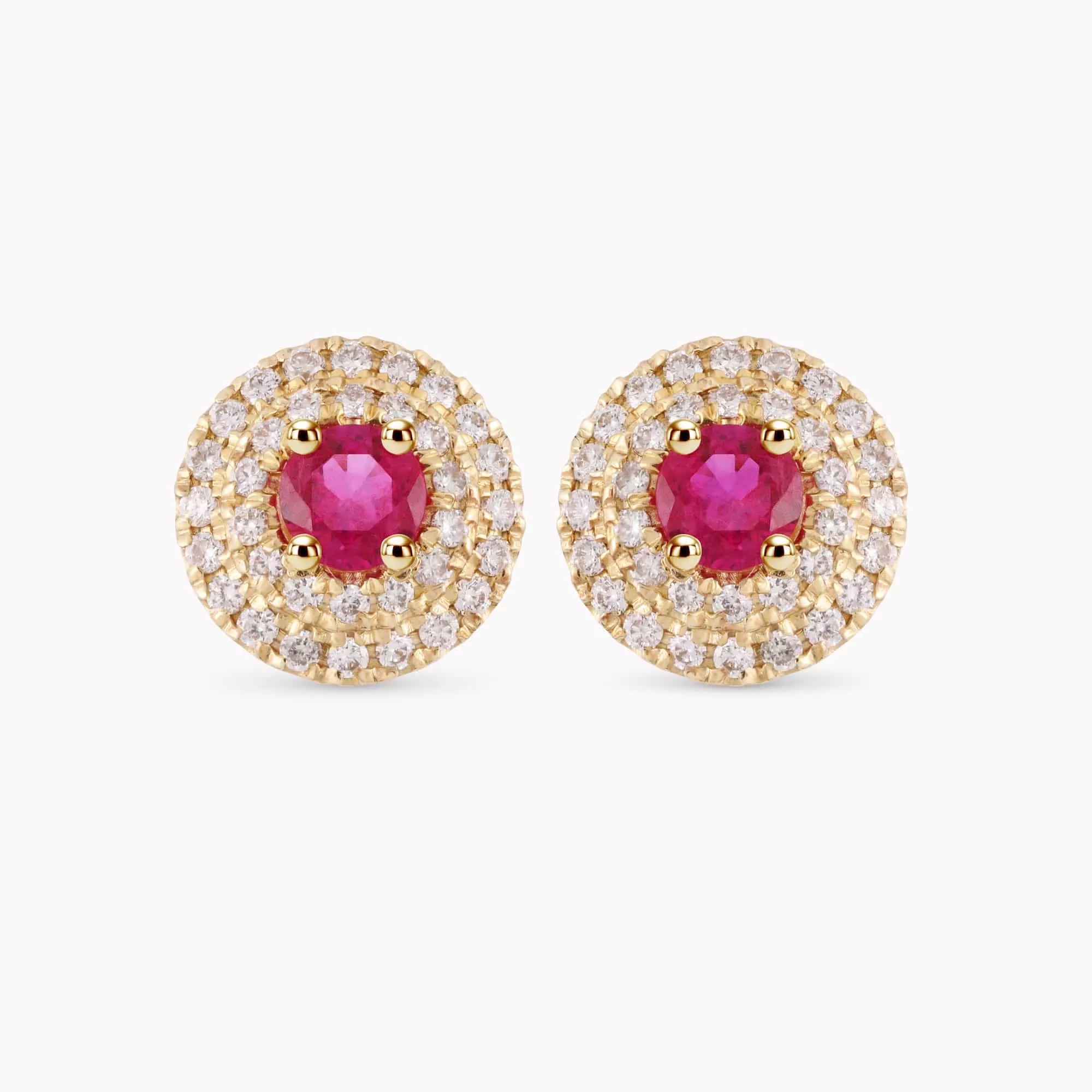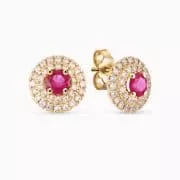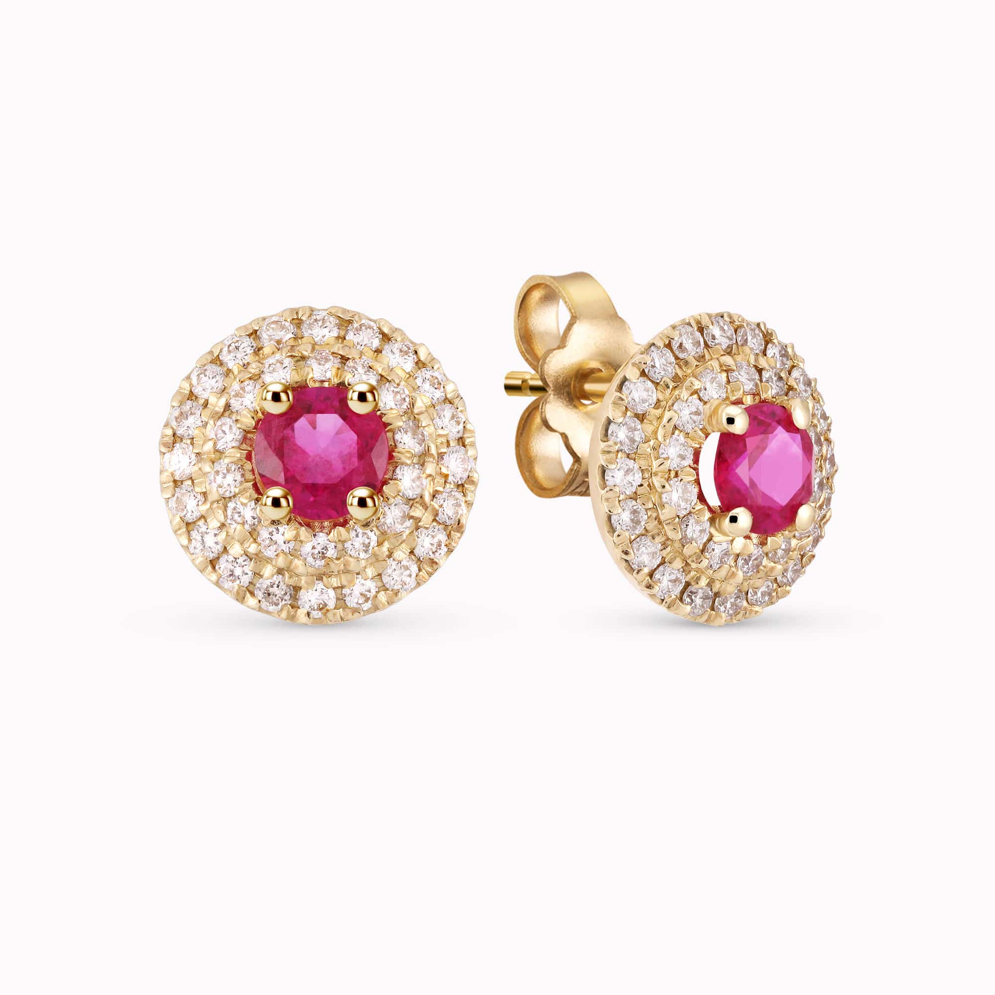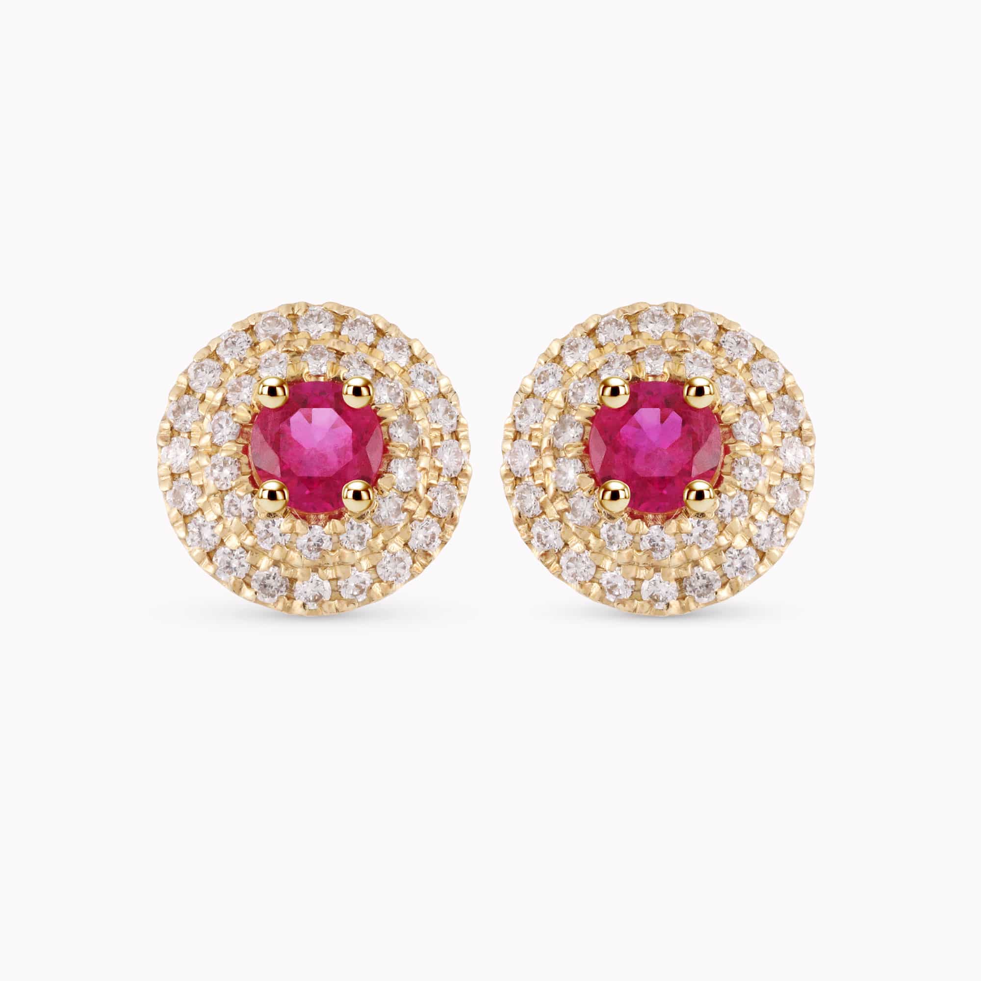 Beautiful and Elegant 14K Yellow gold Earrings with 0.54Ct Ruby and 0.52Ct Diamond setting.