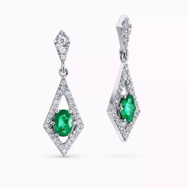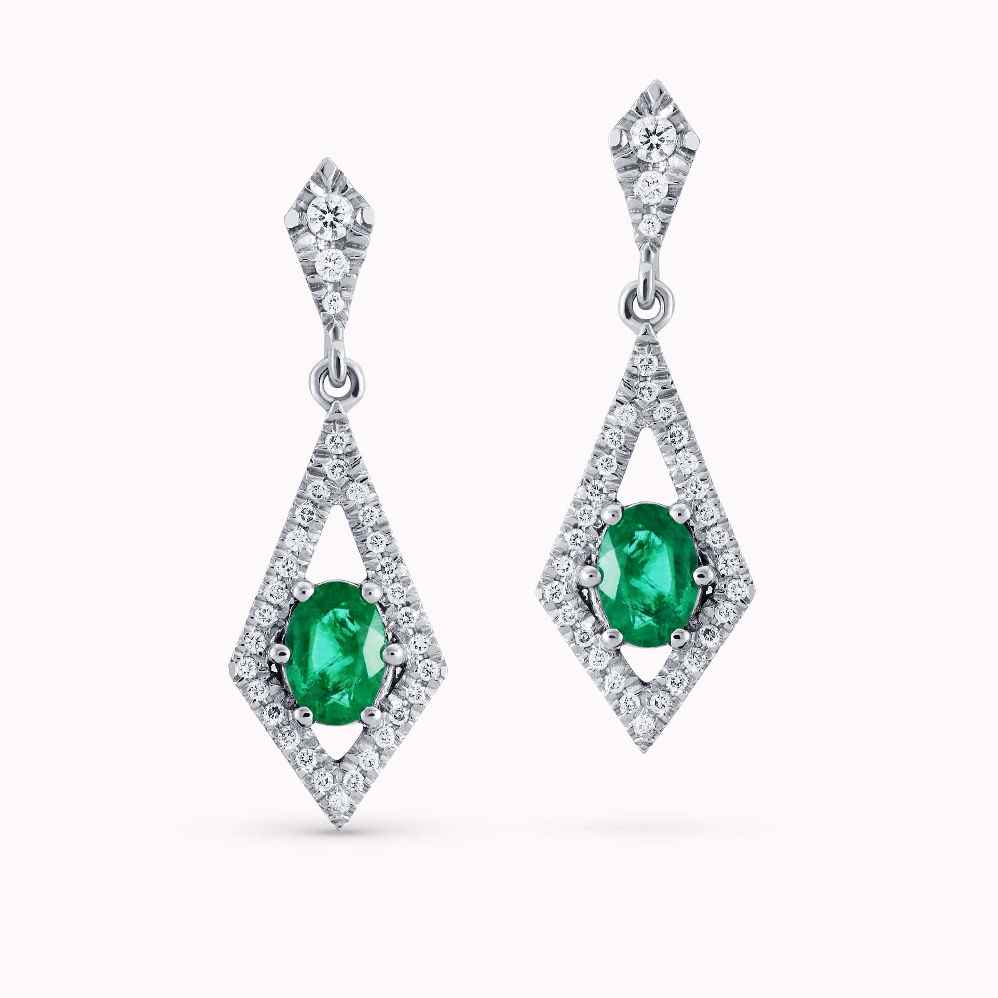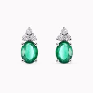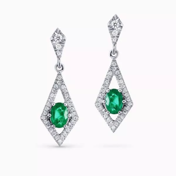0.78Ct. Emerald Gemstones with 0.28Ct. Diamonds set in 14K White Gold Earrings.