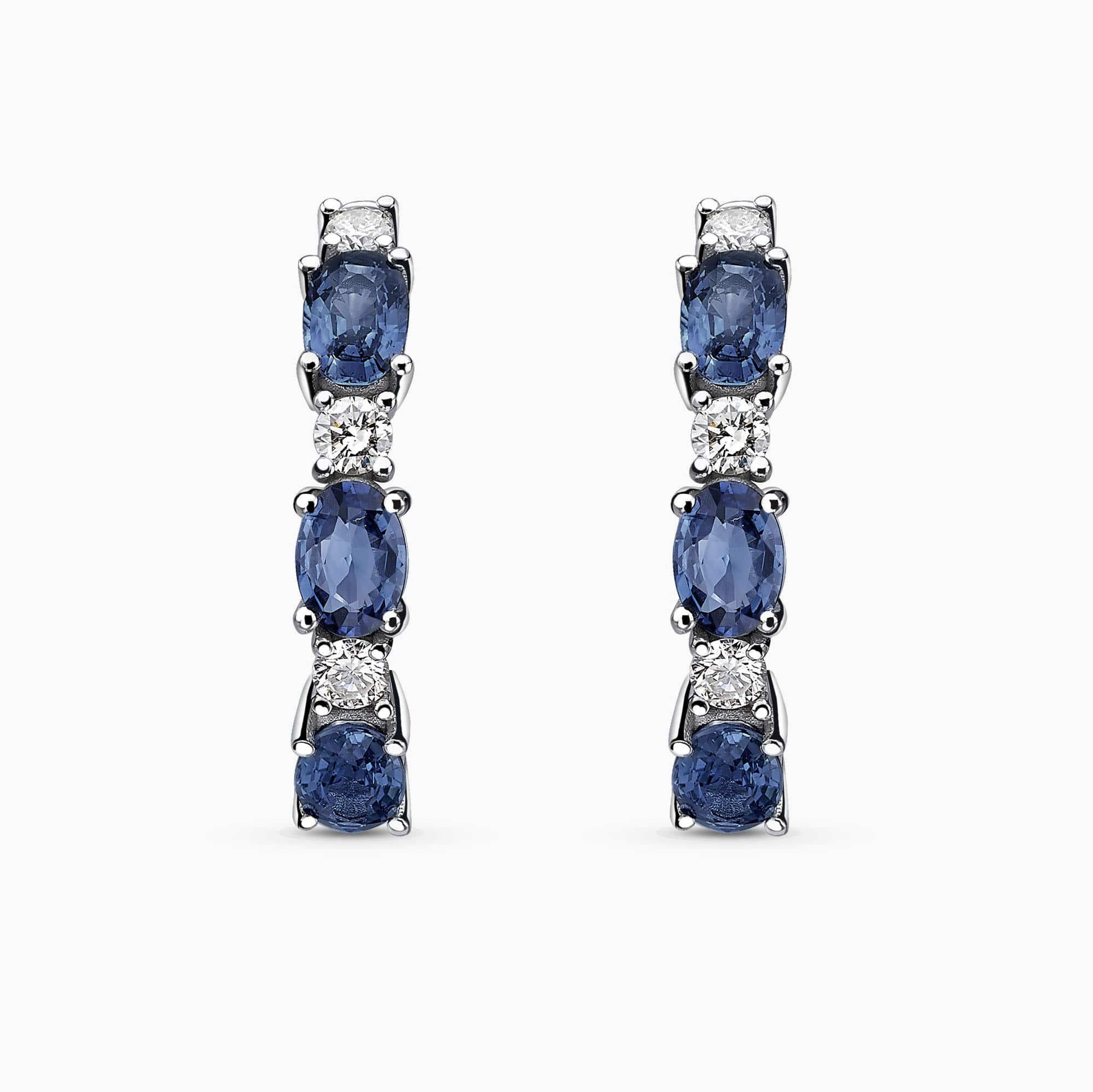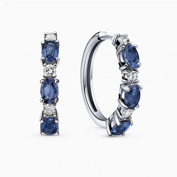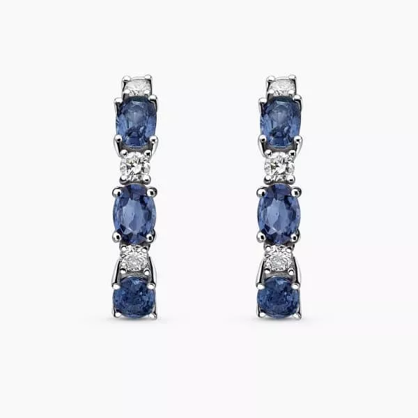 3.08Ct. Sapphire and 0.55Ct. Diamond set in a 14K White Gold Hoop Earrings.