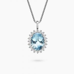0.44Ct. Sapphire center Stone with 0.22Ct. Diamond setting in 14K White Gold Pendant.