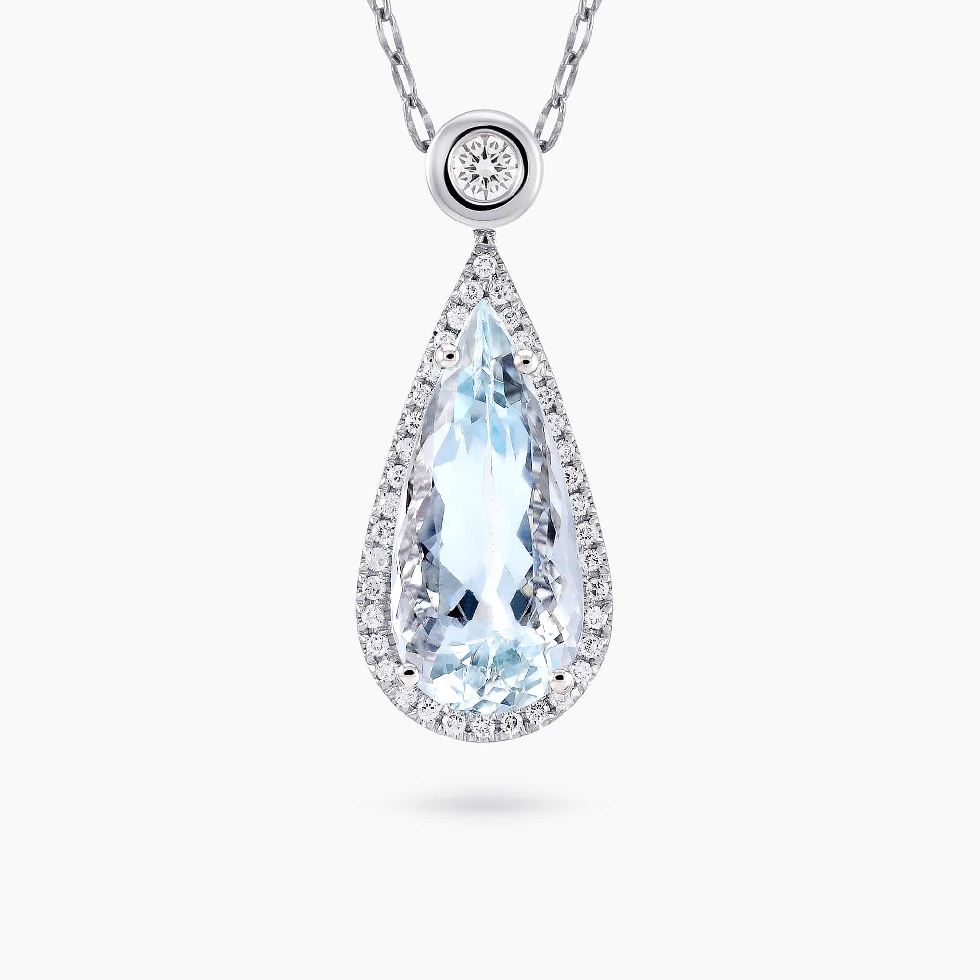 A Beautiful 3.96Ct. Pear Shaped Aqua Marine Gemstone with 0.29Ct. Diamond Halo mounted in 14K White Gold Pendant.
