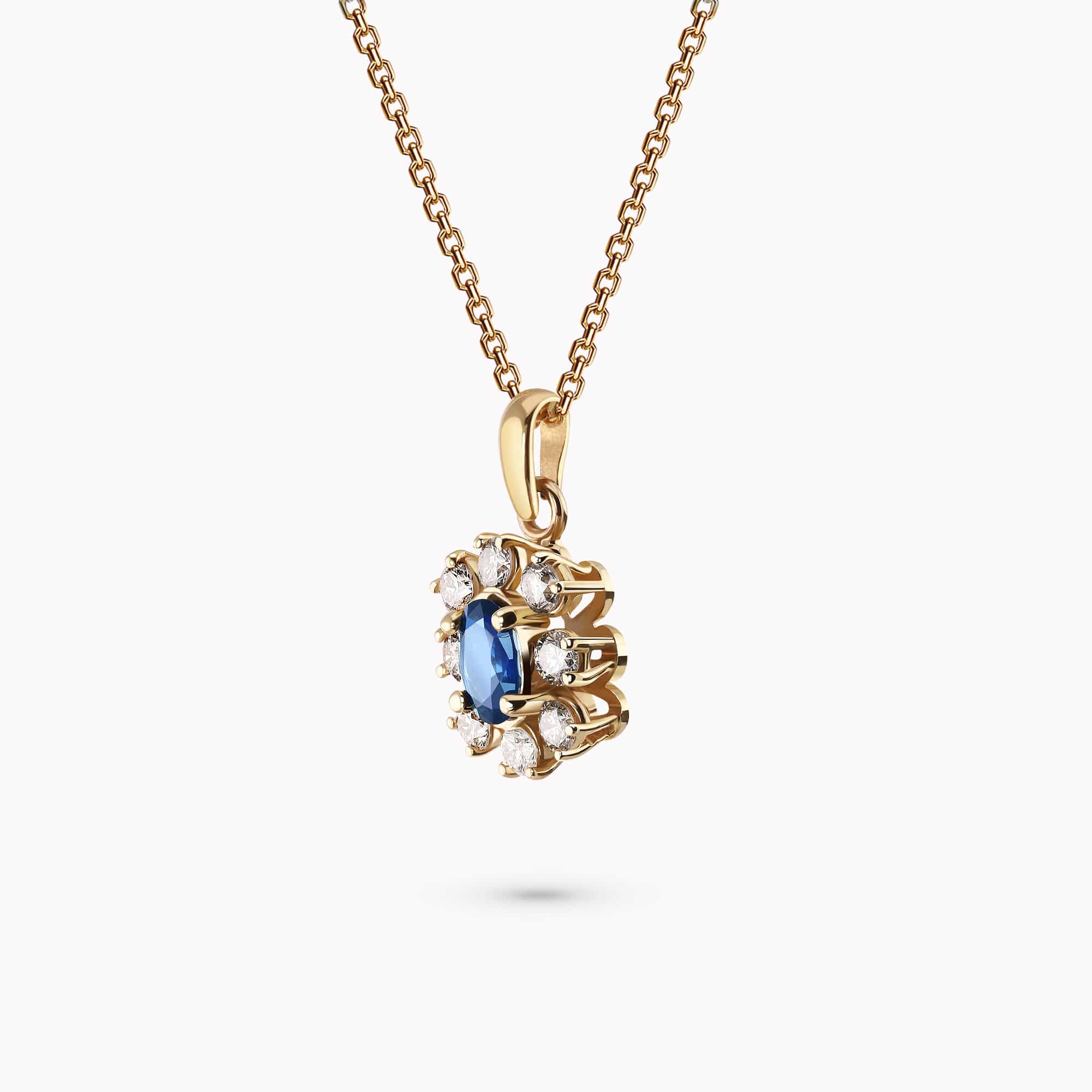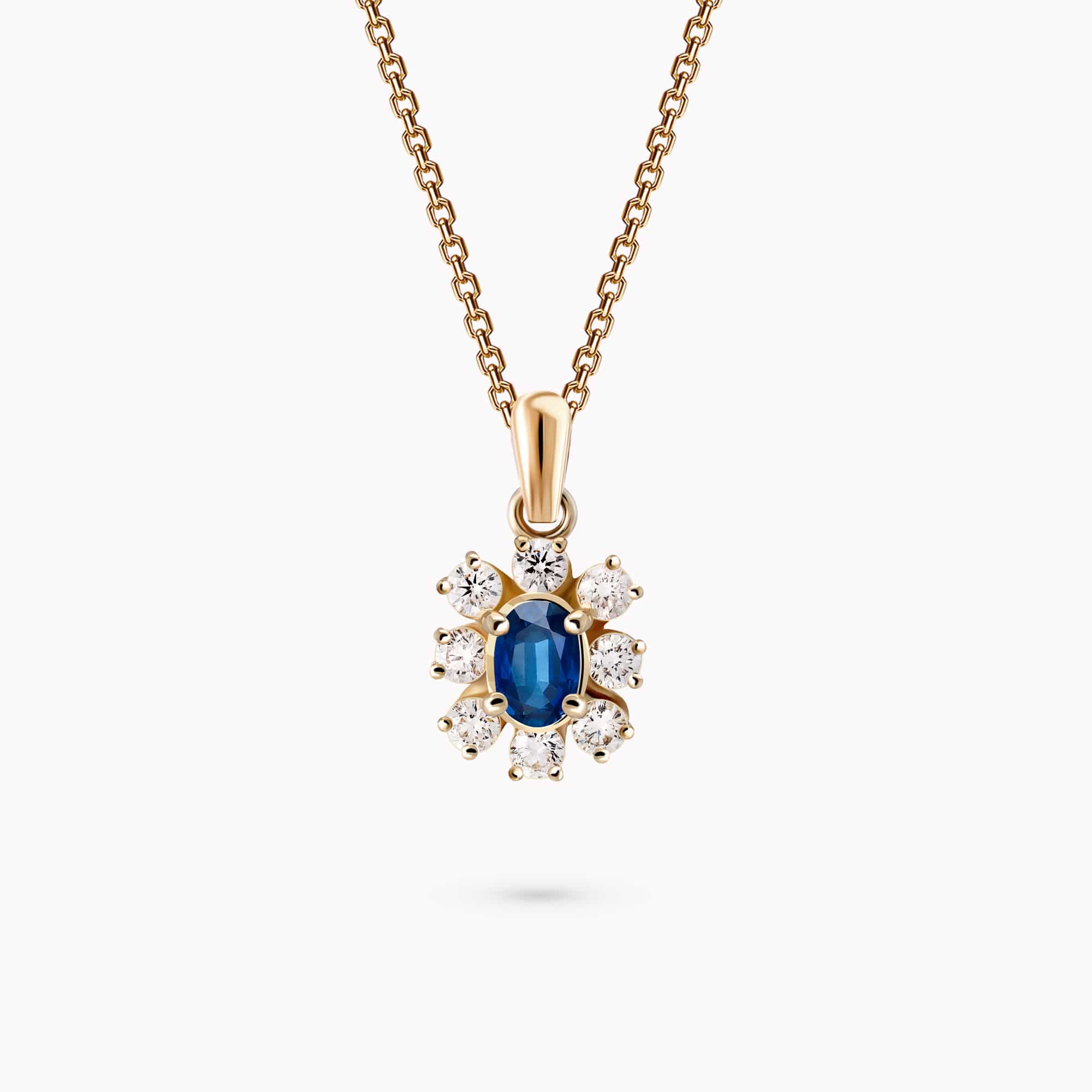 0.53Ct. Sapphire center Stone with 0.50Ct. Diamond Halo setting in 14K Gold Pendant.