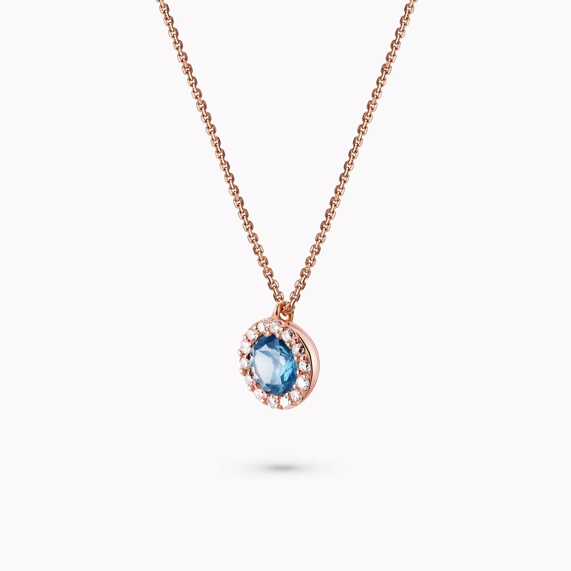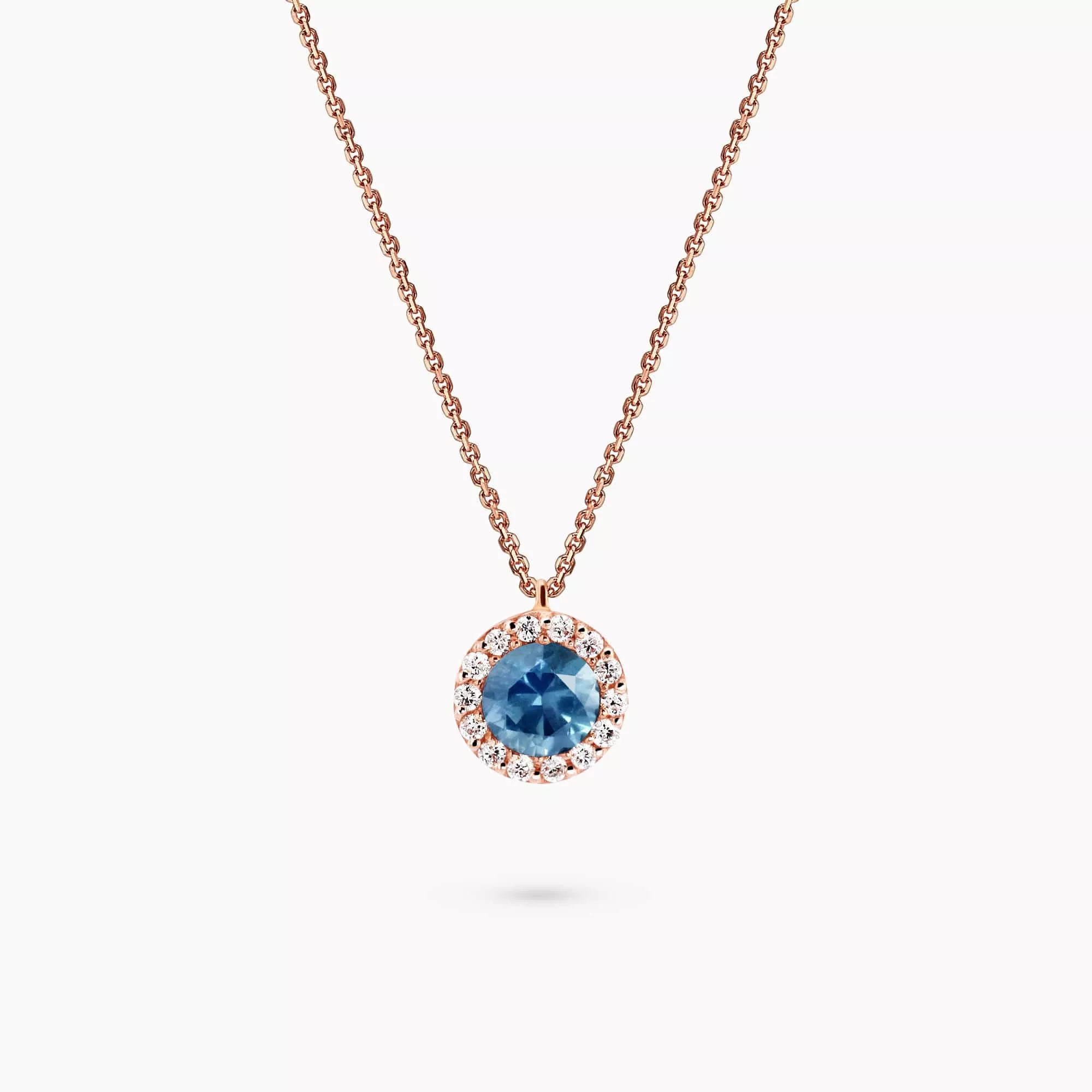 0.40Ct. Sapphire center Stone with 0.10Ct. Diamond Halo setting in 14K Rose Gold Pendant.