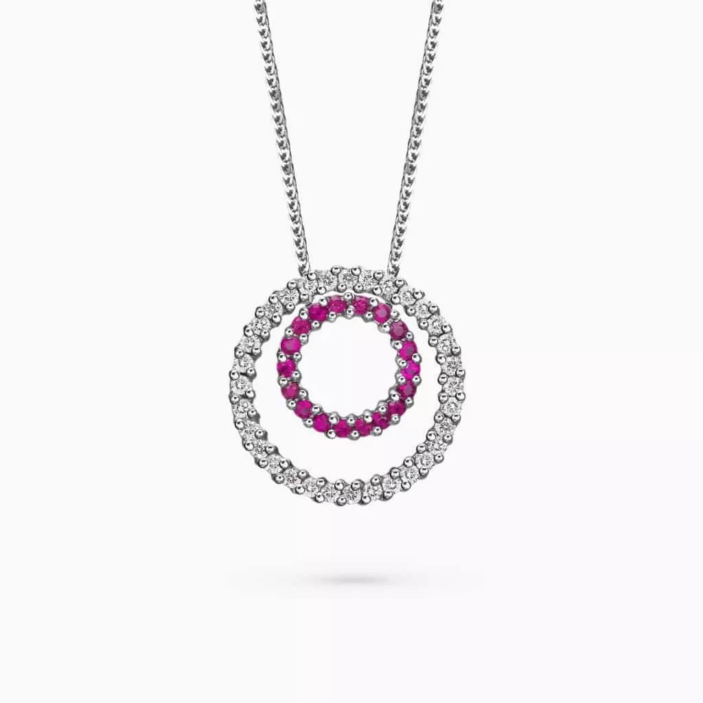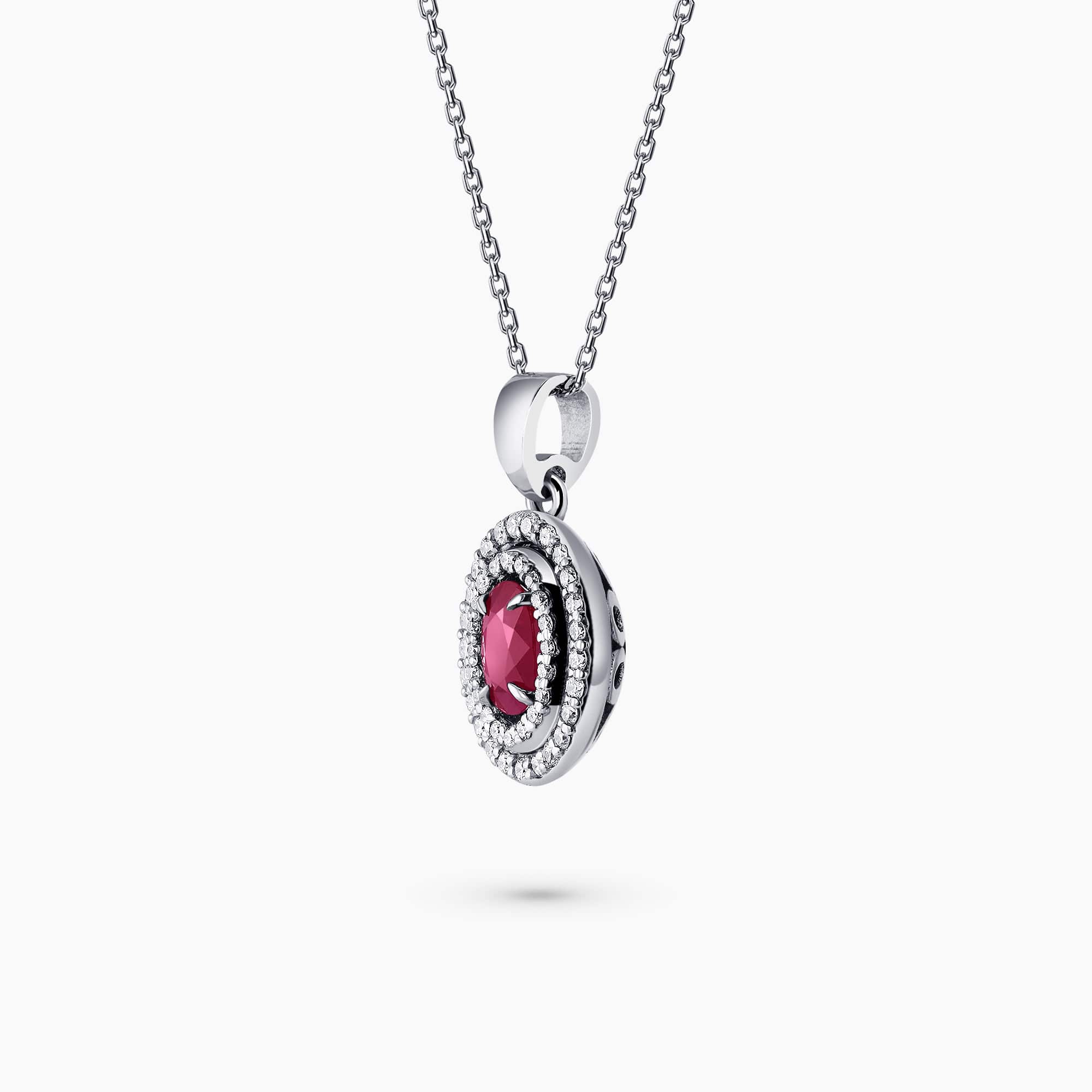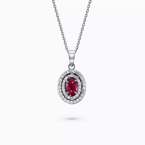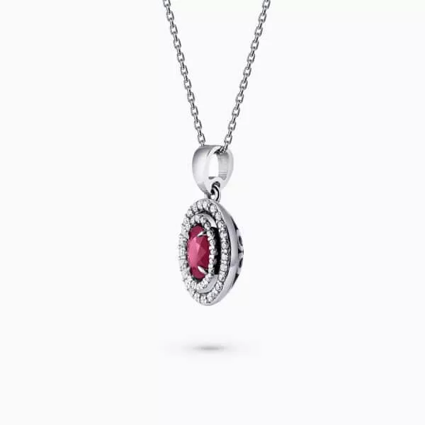 0.57Ct. Ruby center Stone with 0.22Ct. Diamond Halo setting in 14K Gold Pendant.