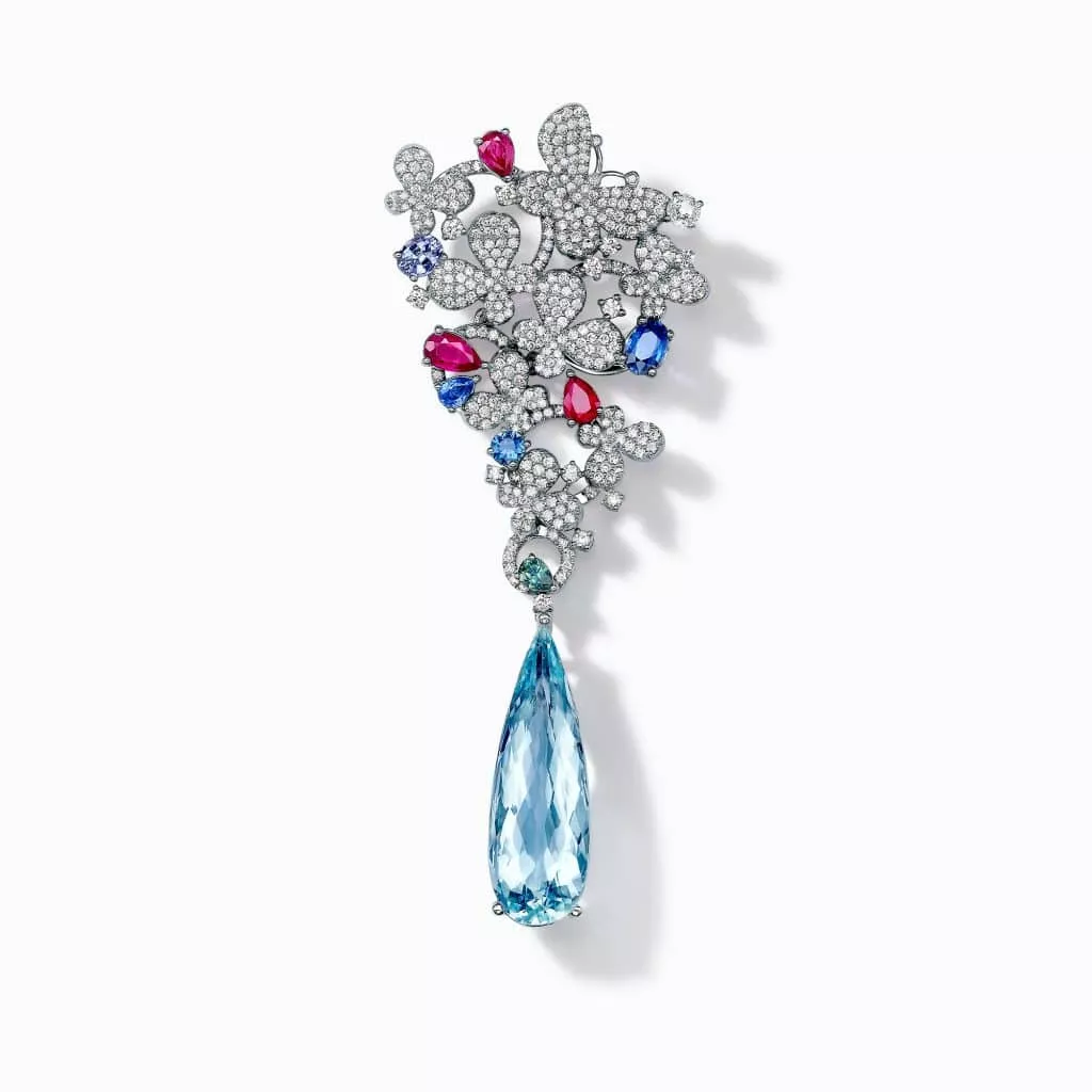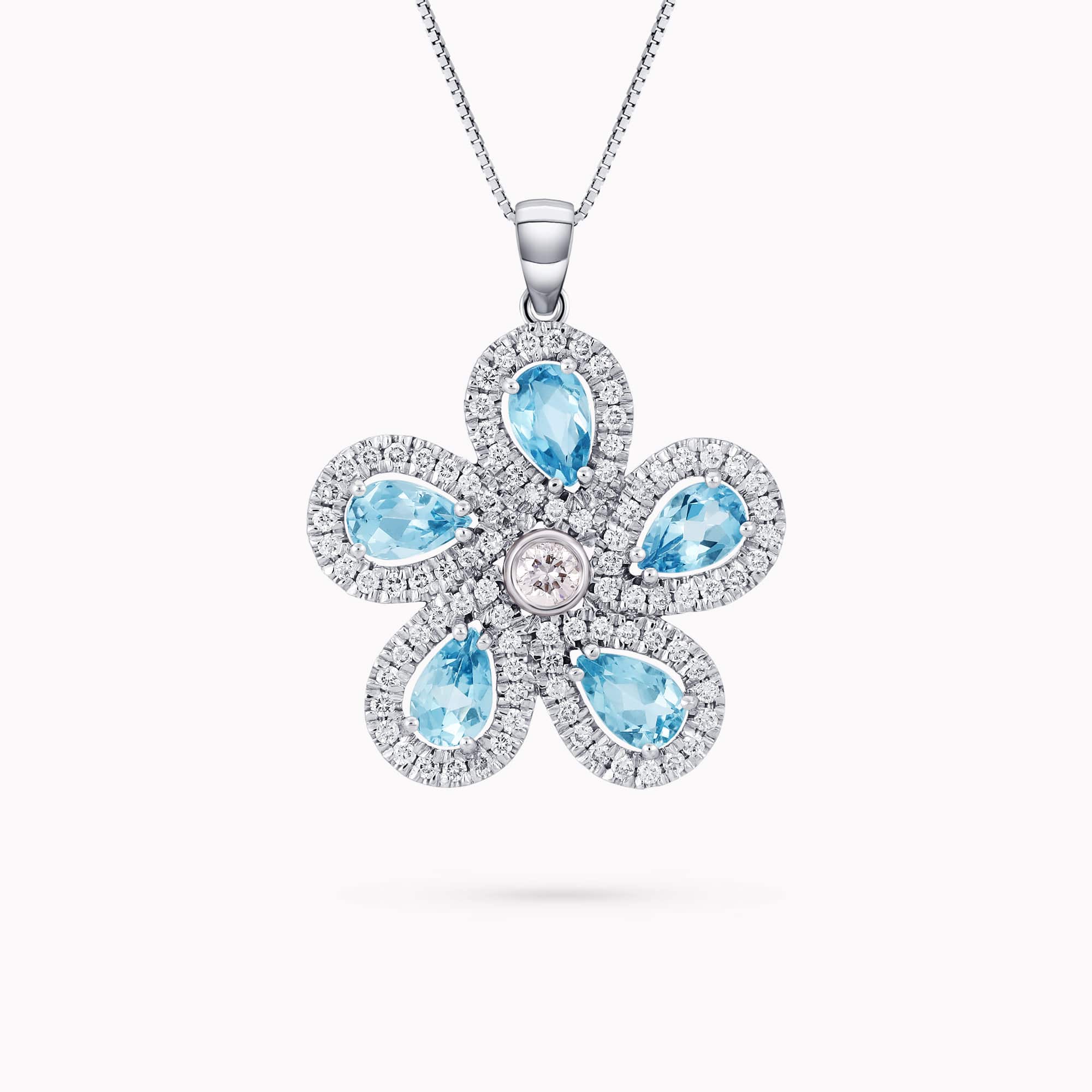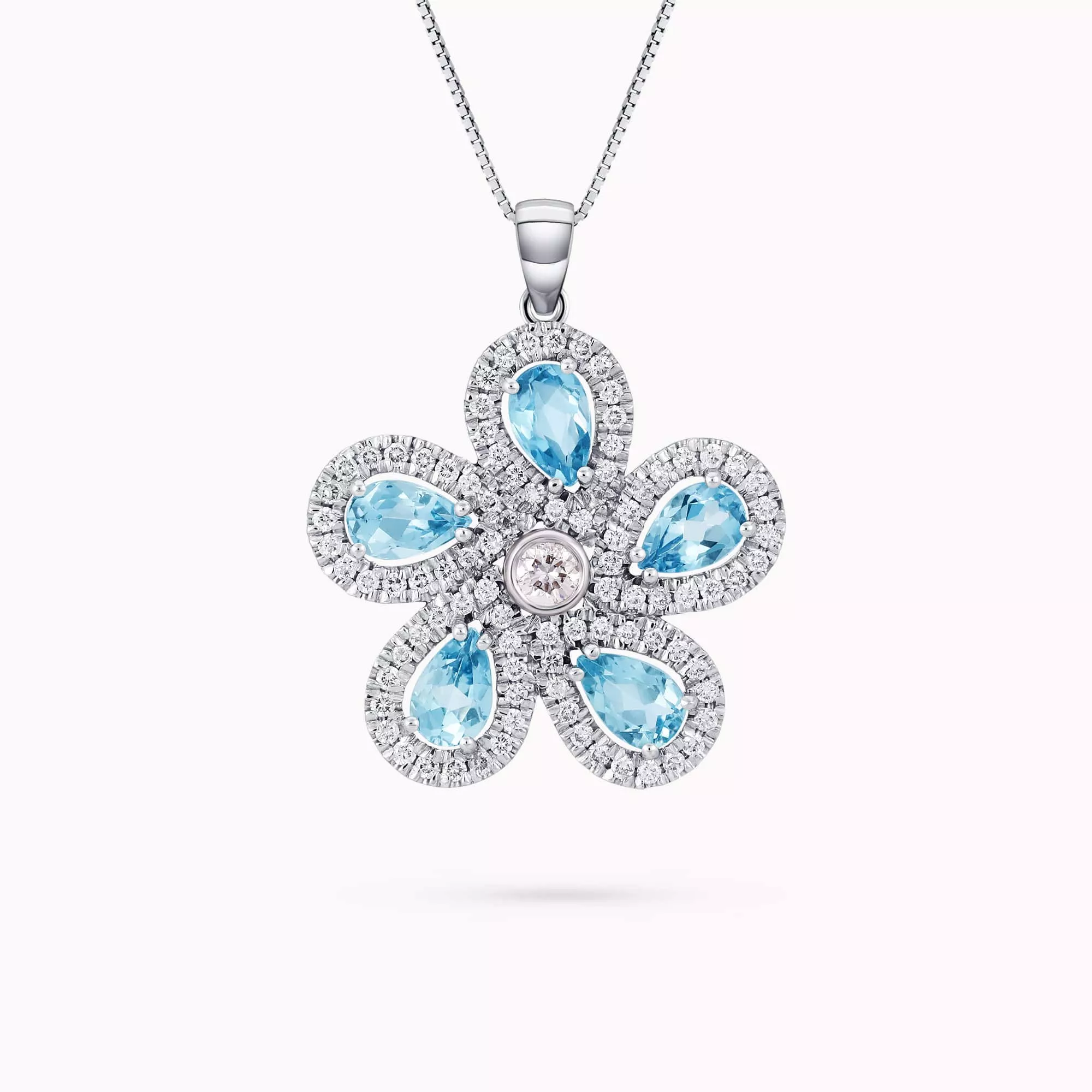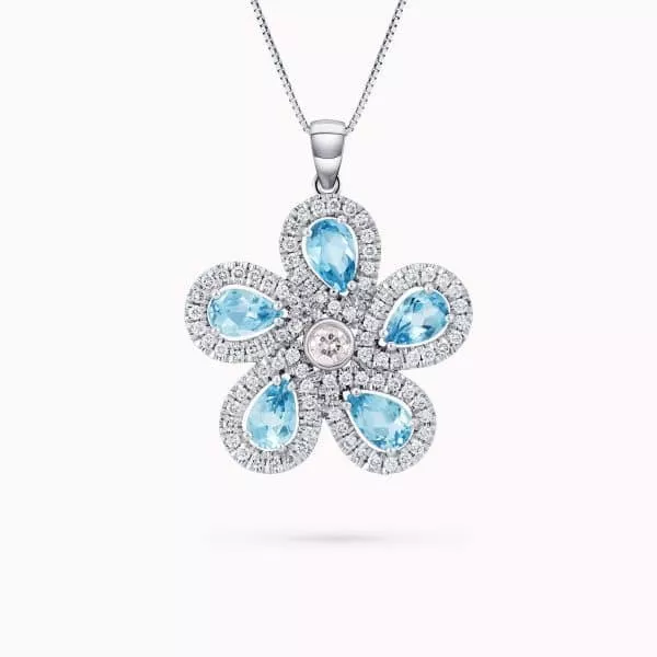 1.66Ct. Aqua Marine and 0.70Ct. Diamond setting in 14K White Gold Fower Pendant.