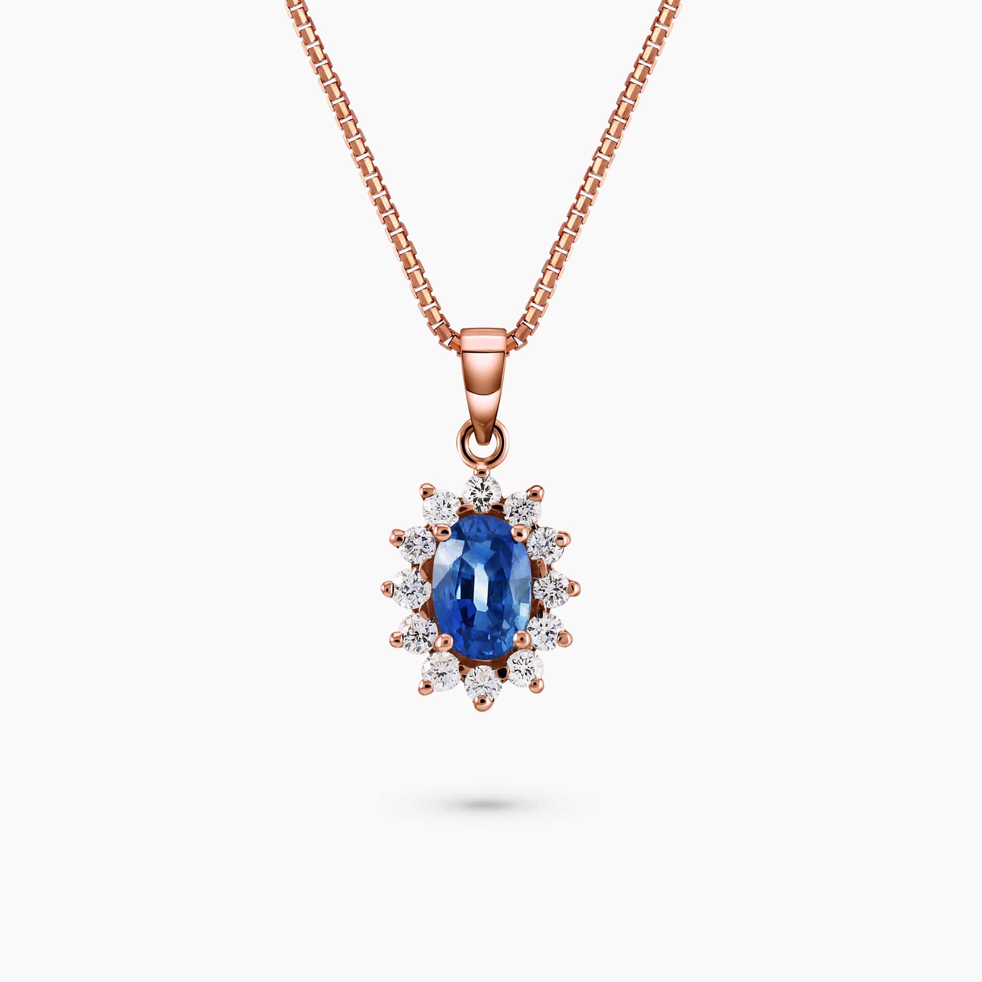 0.43Ct. Sapphire center Stone with 0.21Ct. Diamond Halo setting in 14K Gold Pendant.