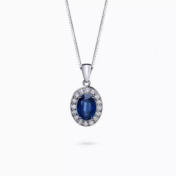 1.00Ct. Sapphire center Stone with 0.15Ct. Diamond Halo setting in 14K Gold Pendant.