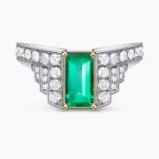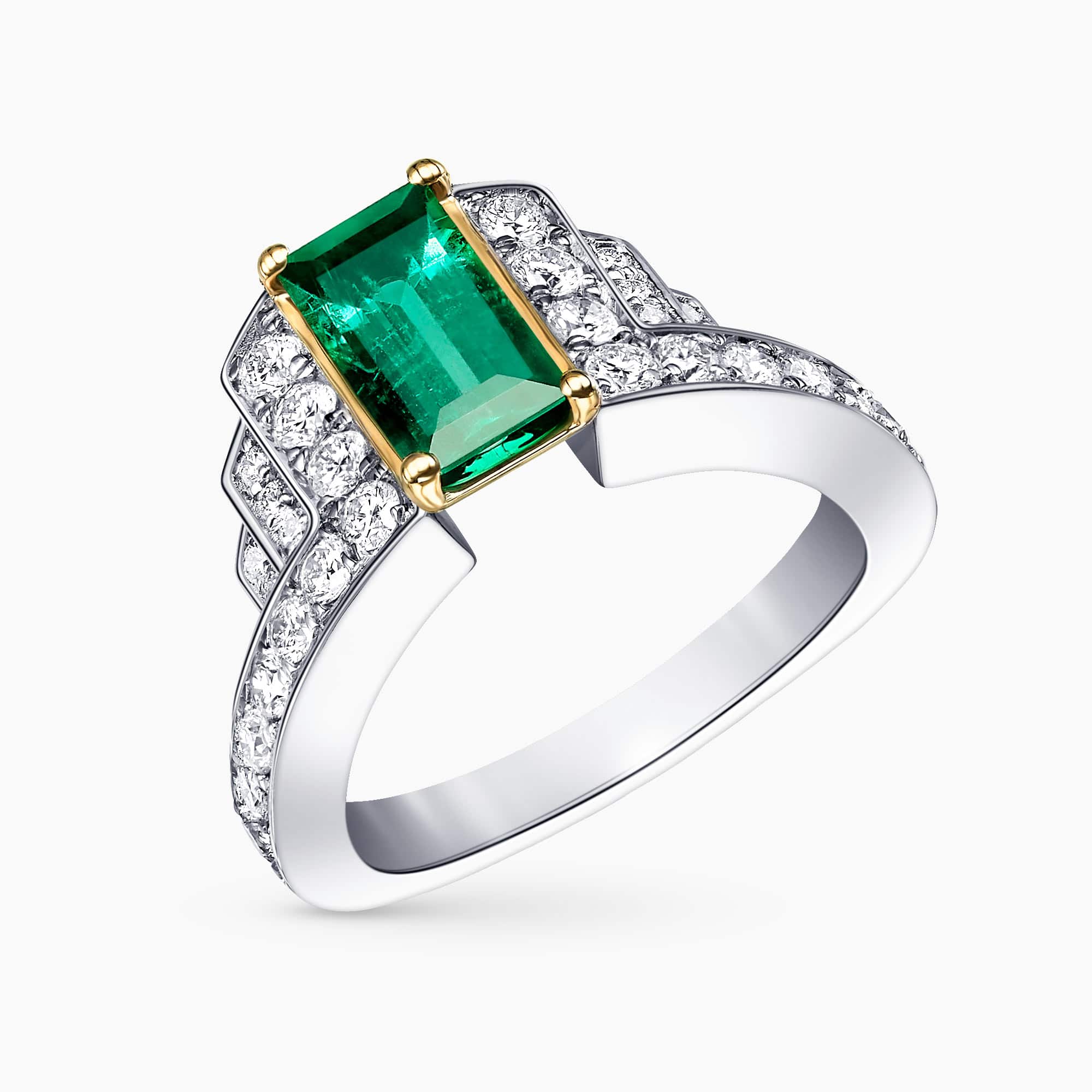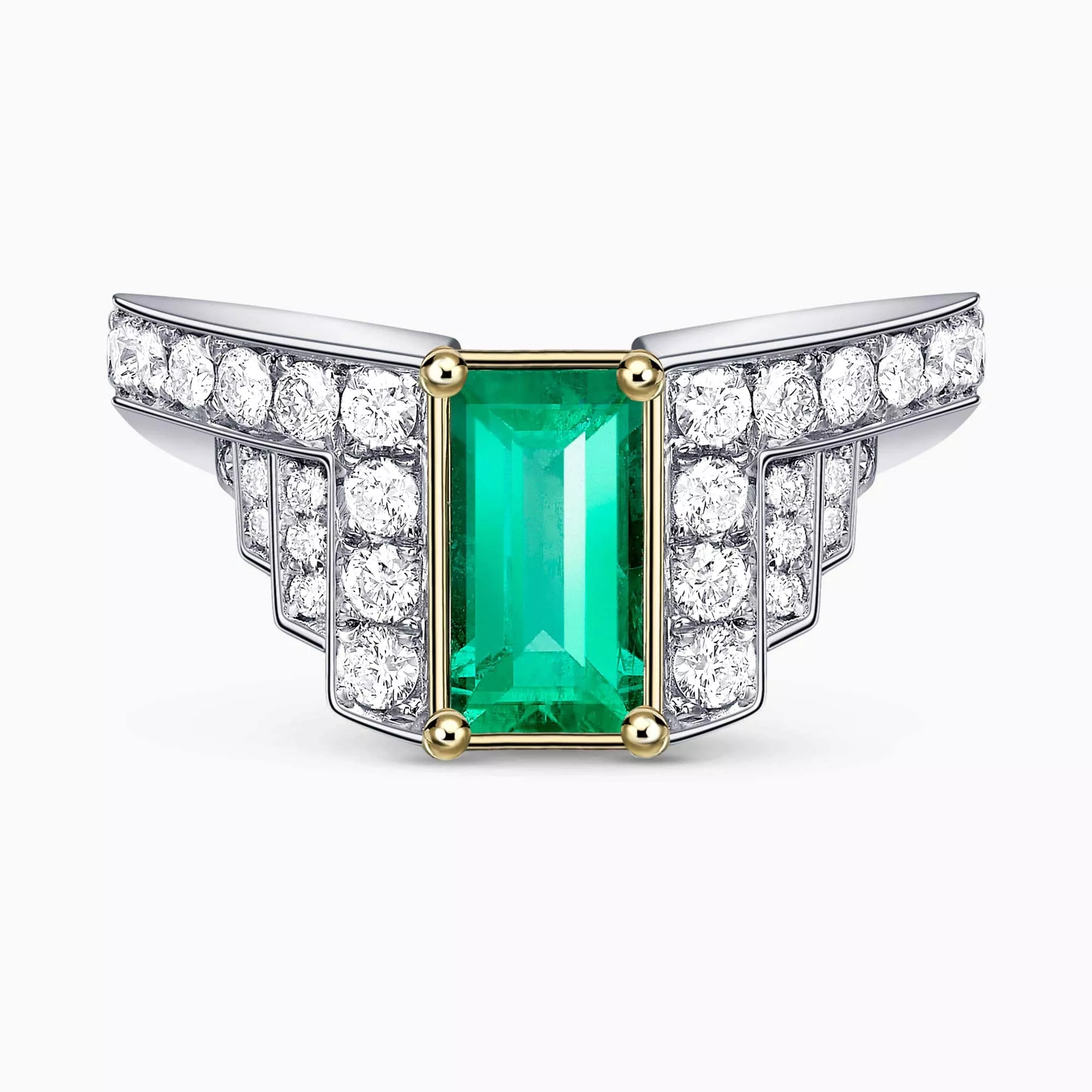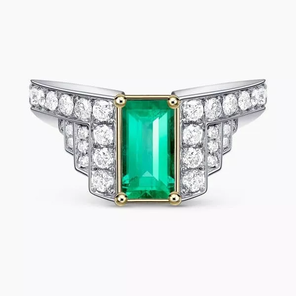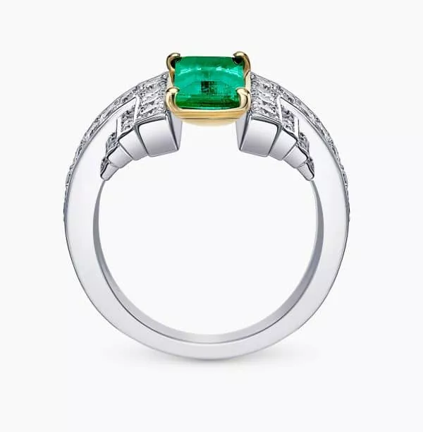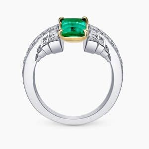 A Dazzling 1.28Ct. Emerald stone with 0.80Ct. Diamond setting in 18K Gold Step Ring.