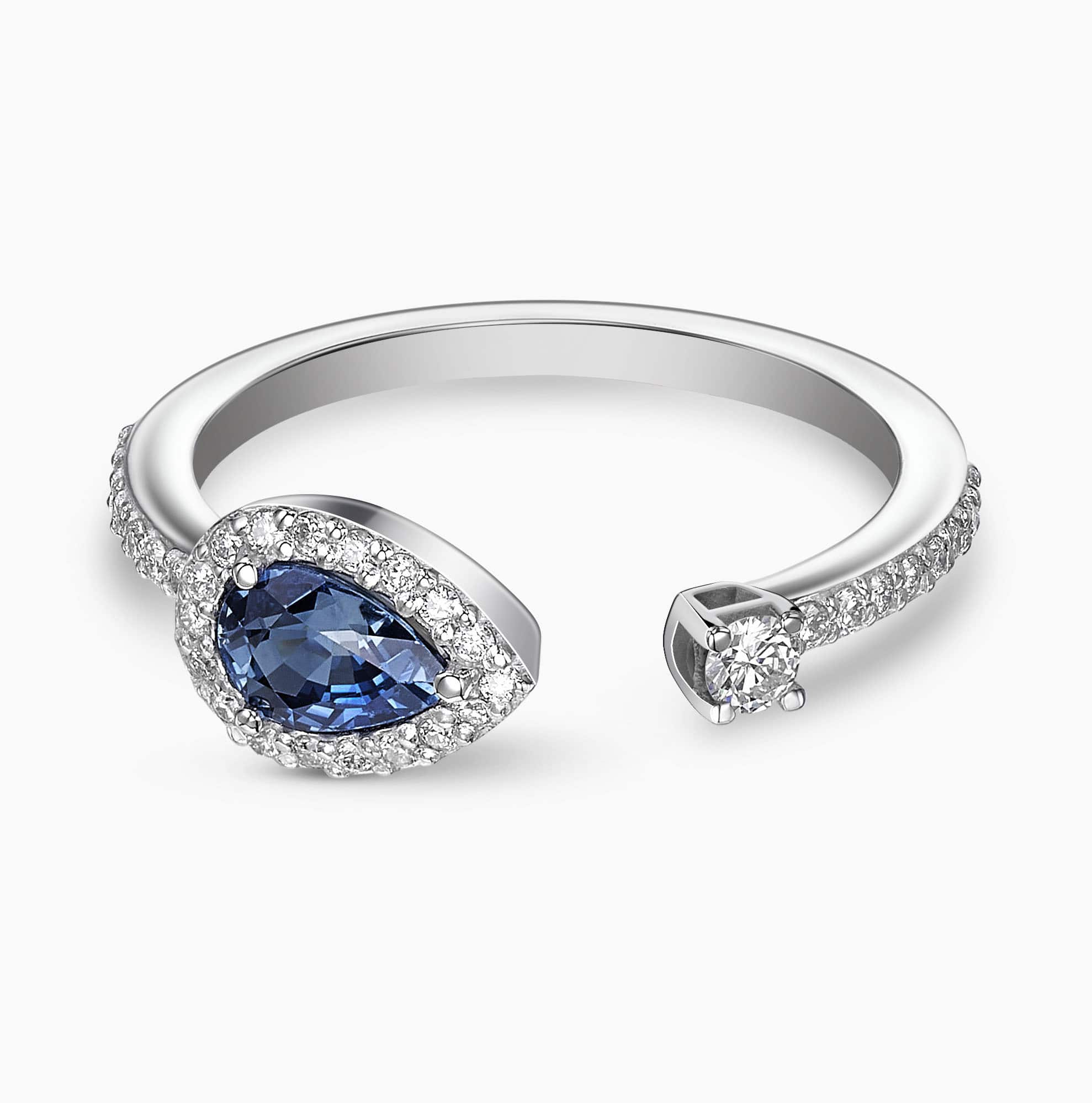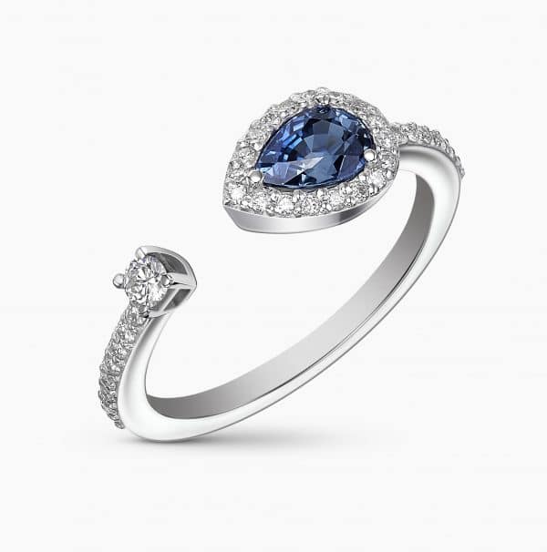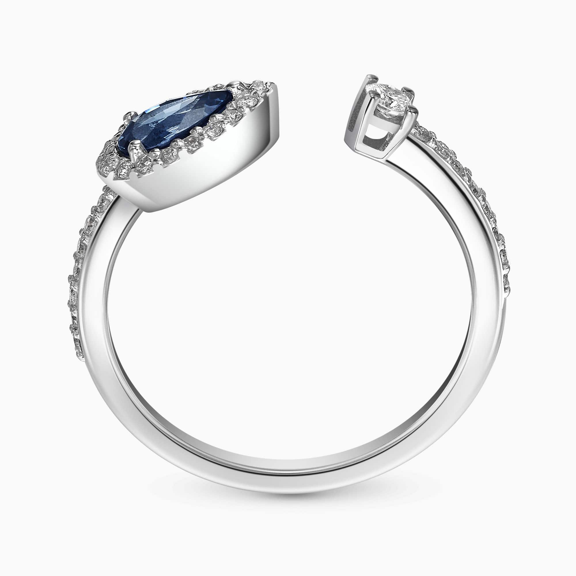 0.45Ct. Pear Shaped Sapphire with 0.22Ct. Diamonds Halo mounted in a 14K White Gold Ring.