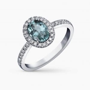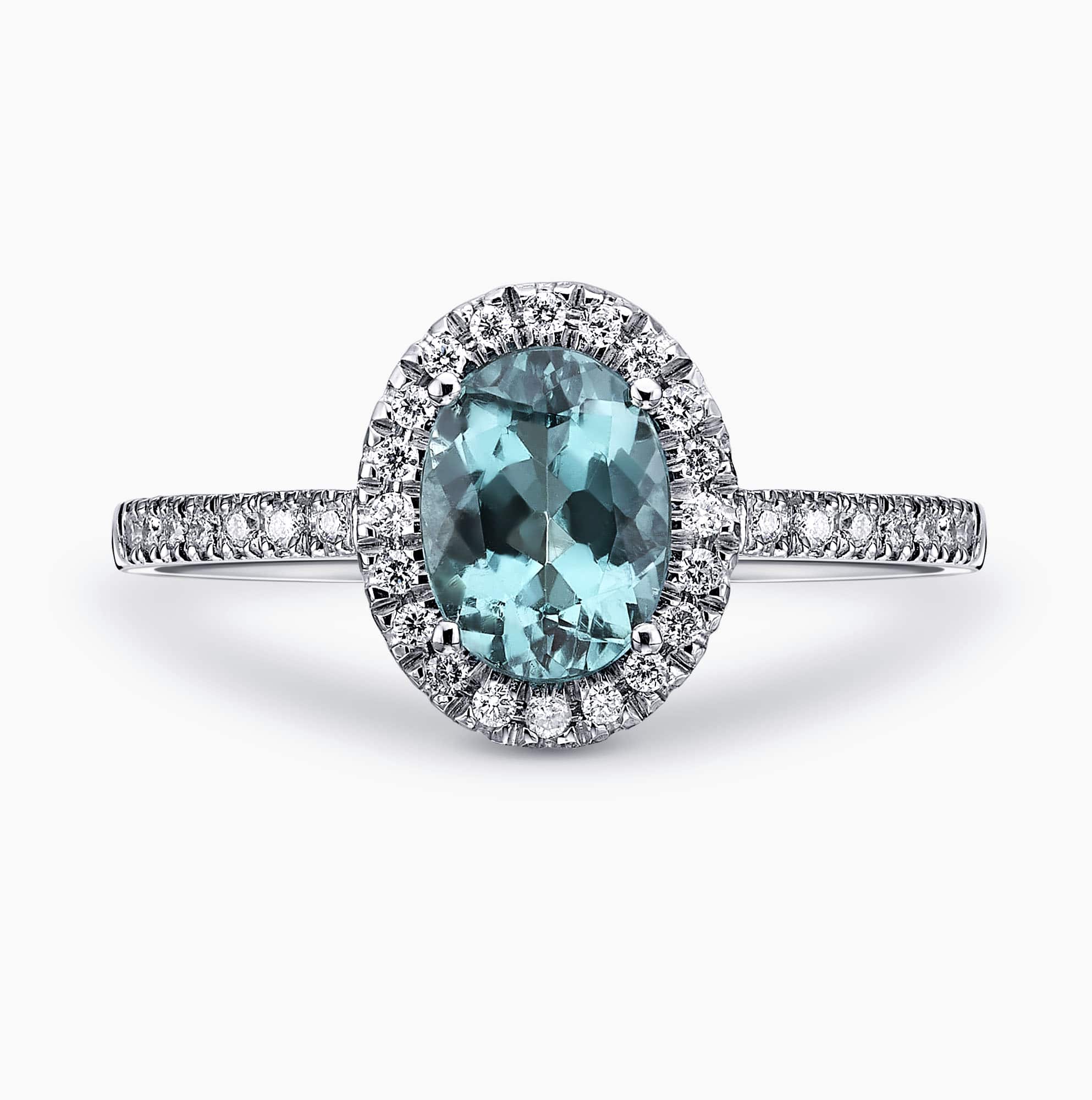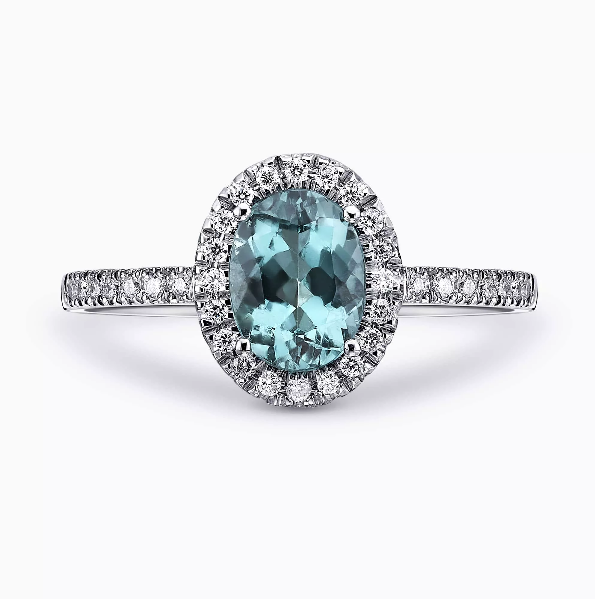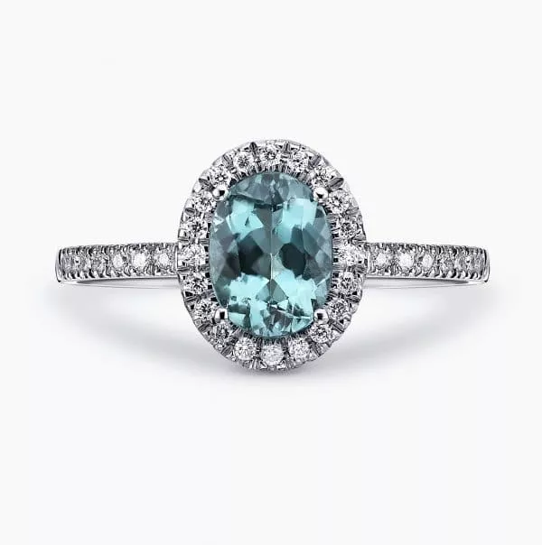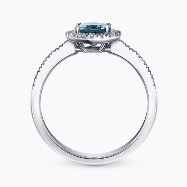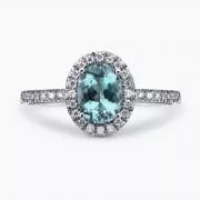 1.11Ct. Tourmaline center stone in 0.20Ct. diamond Halo, set in a 14K White gold Ring.